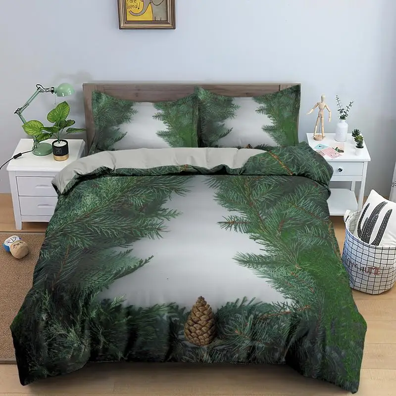 Комплекты постельного белья с 3D принтом зеленых листьев, пододеяль...