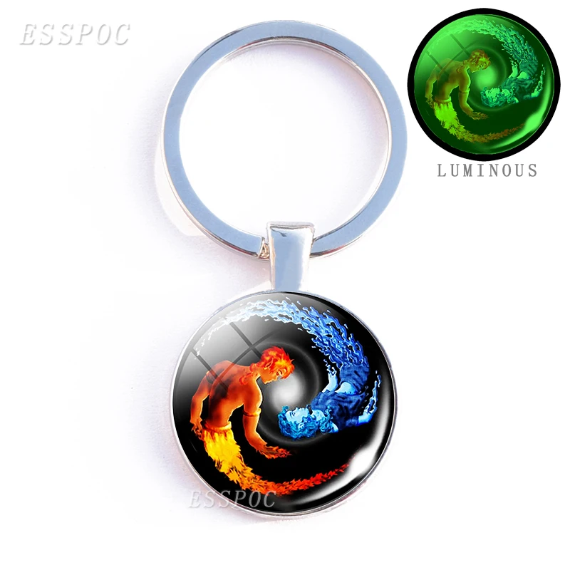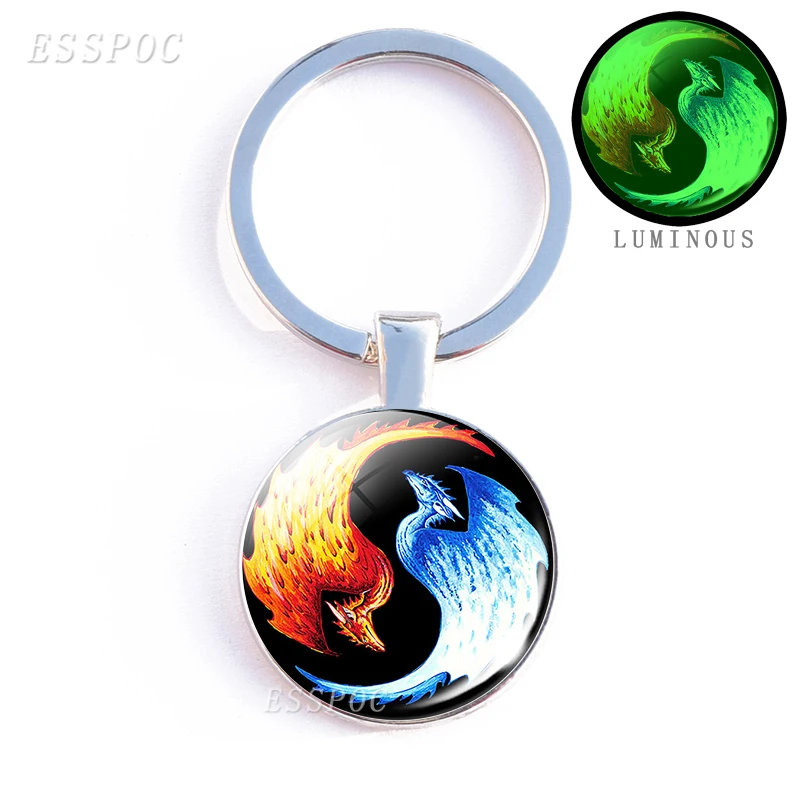 Светящийся двойной брелок с символами Инь-Янь и тайчи, винтажное Ювелирное Украшение с двумя кошками Инь-Янь, светящийся стеклянный двухсторонний брелок для подарка
