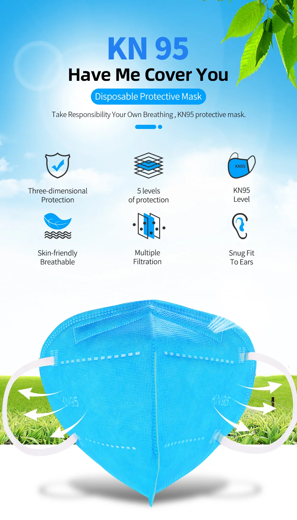 Голубая маска KN95 ffp2 маска для лица 5 слоев 95% фильтр безопасны...