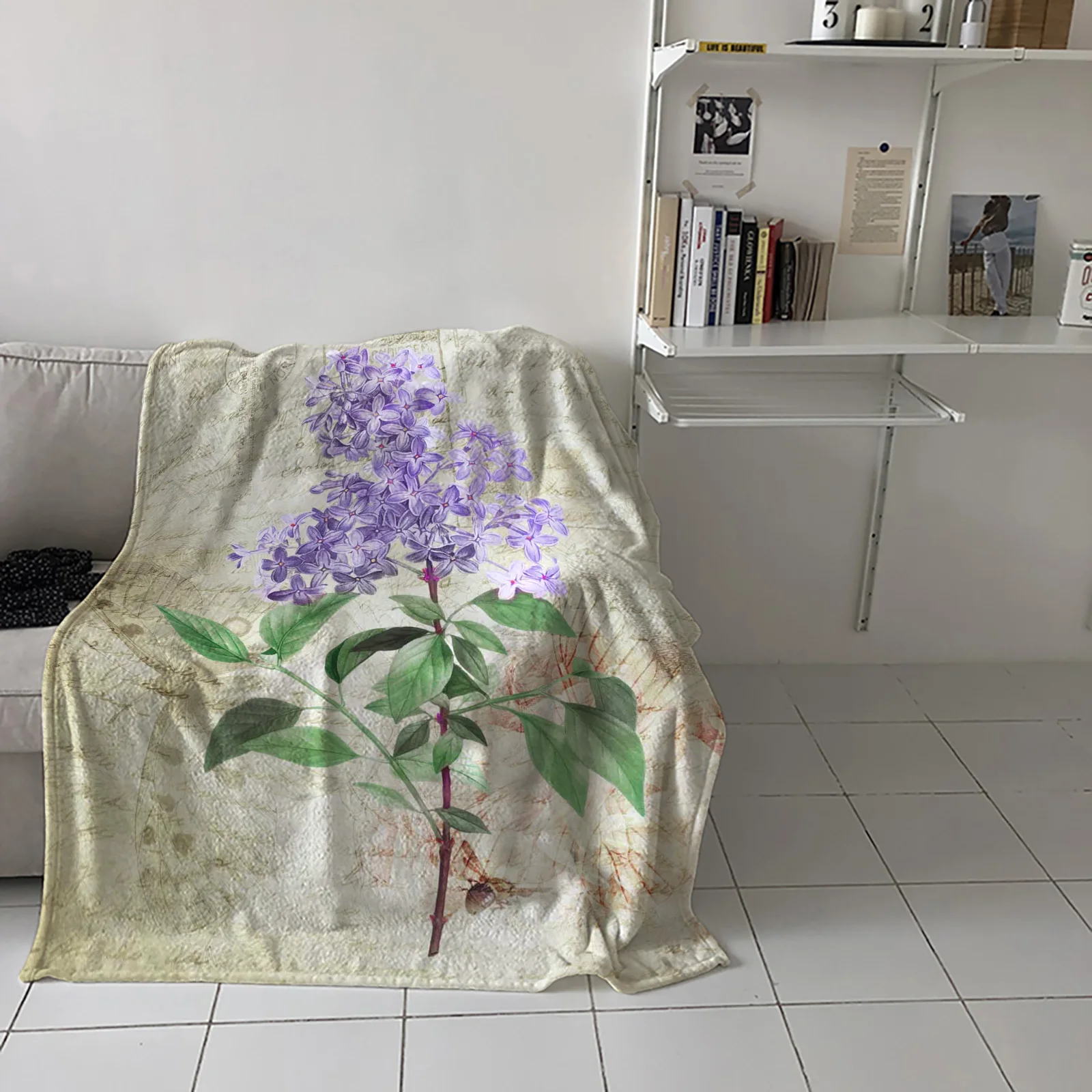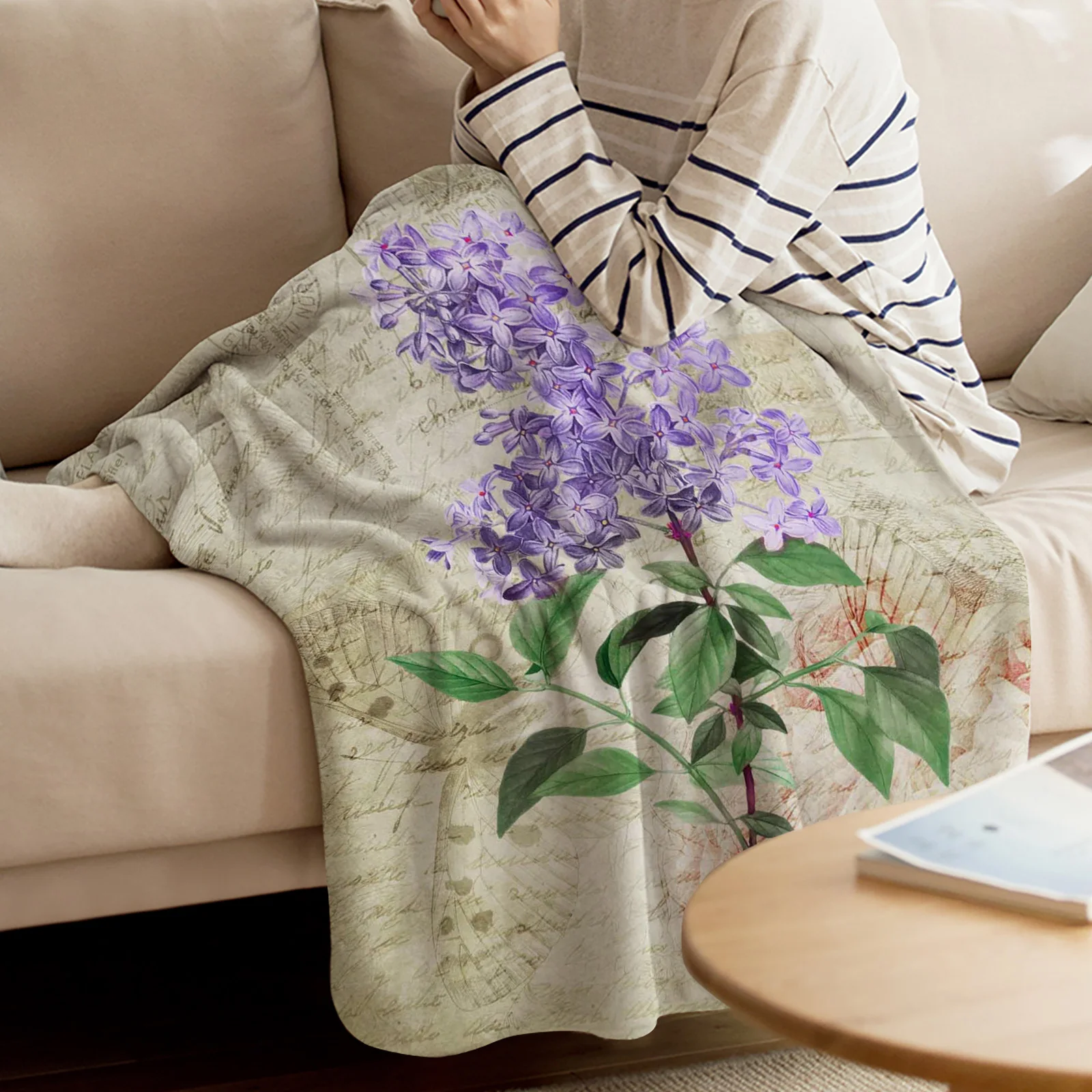 Винтажное растительное Лавандовое фиолетовое одеяло, портативное мягкое одеяло для дивана, фланелевое одеяло из микрофибры для кровати