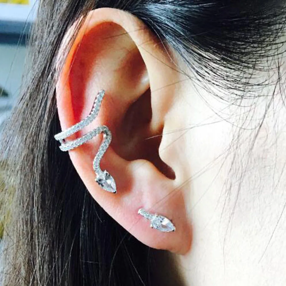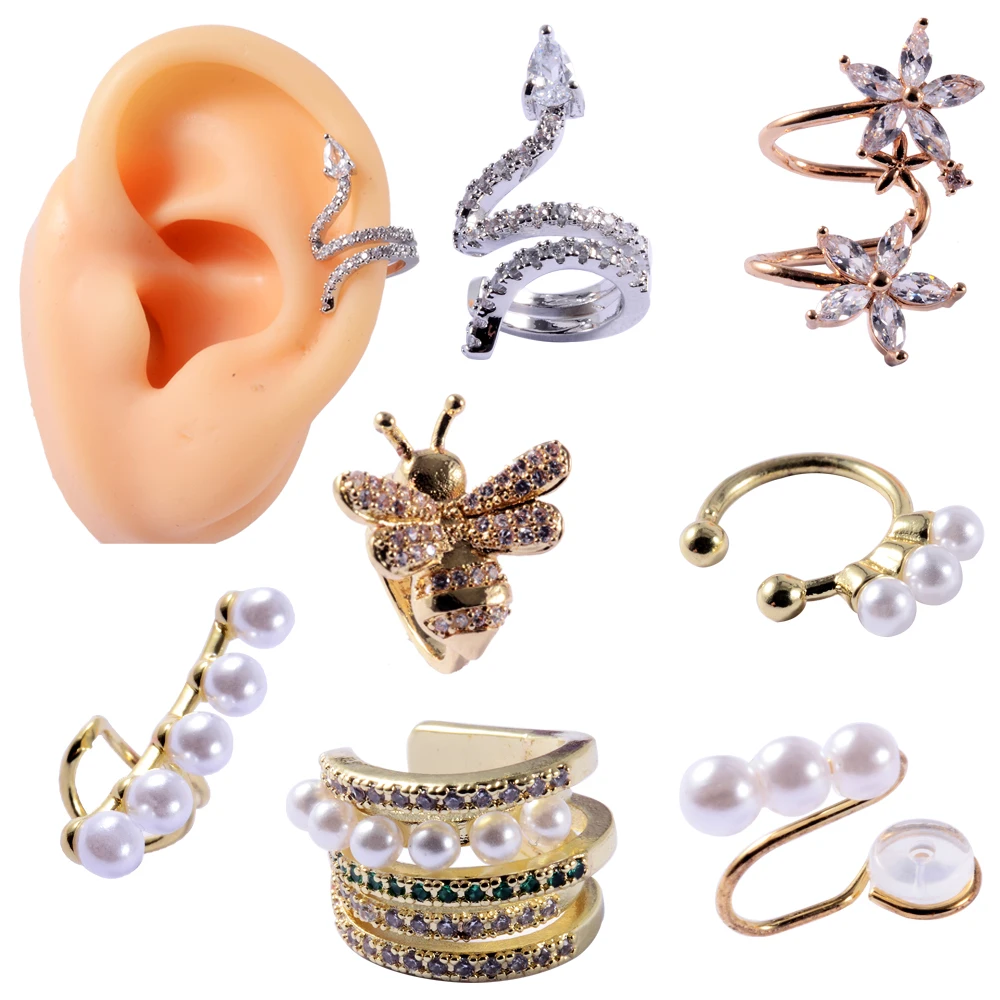 Клипса для ушей с фианитом, Спиральные серьги серьга-накладка раковины на хрящевой ткани, регулируемая манжета-змейка, без проколов, жемчуг, серьги, Надеваемые На ушной хрящ, 1 шт.