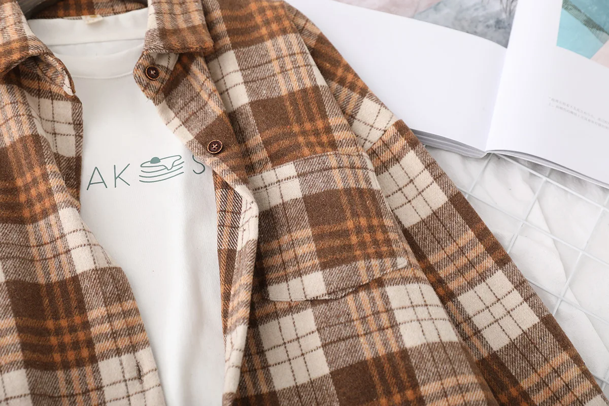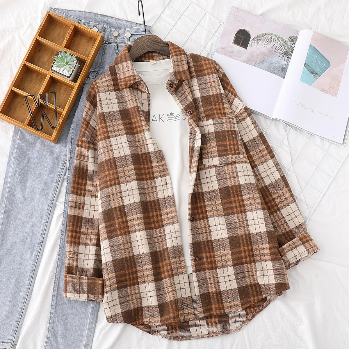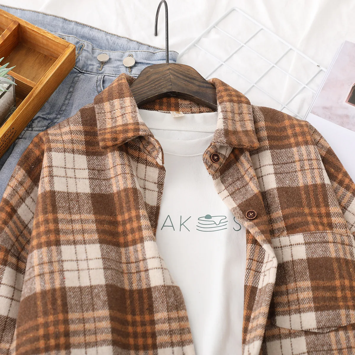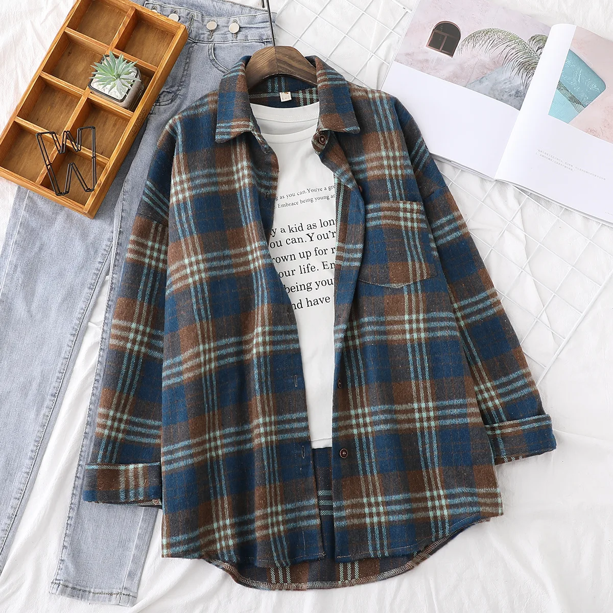 Зимняя новинка, женская фиолетовая клетчатая плотная теплая шерстяная рубашка с длинным рукавом, куртка, винтажные Топы больших размеров, стильная Весенняя верхняя одежда для девочек, T0N436T