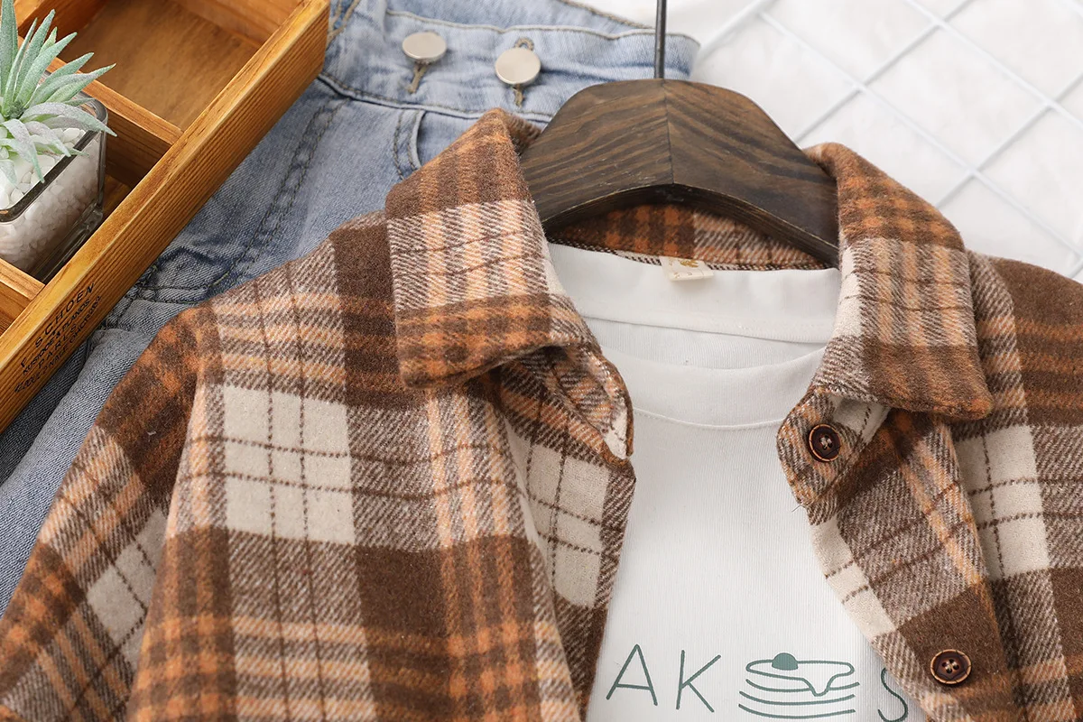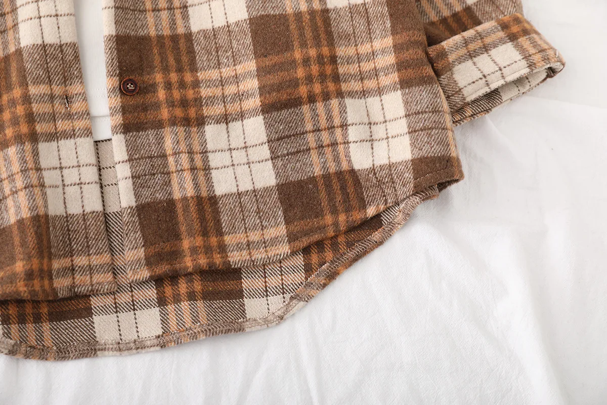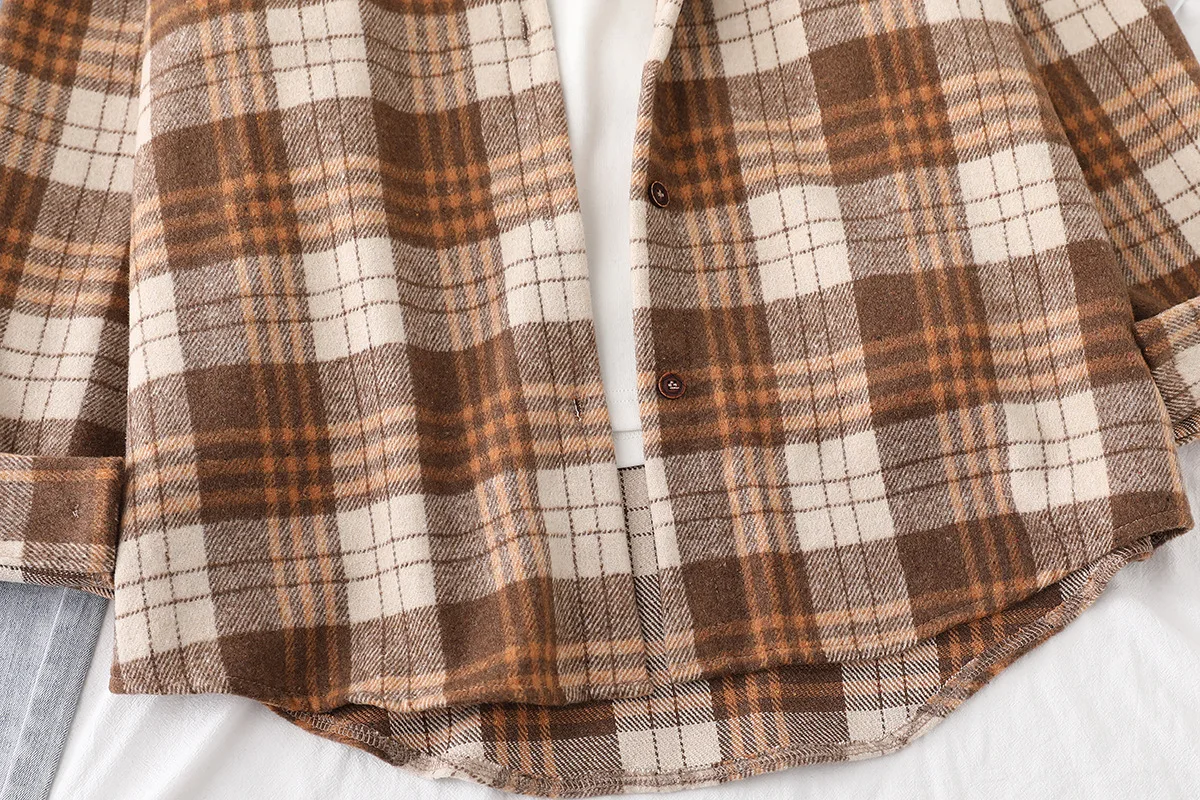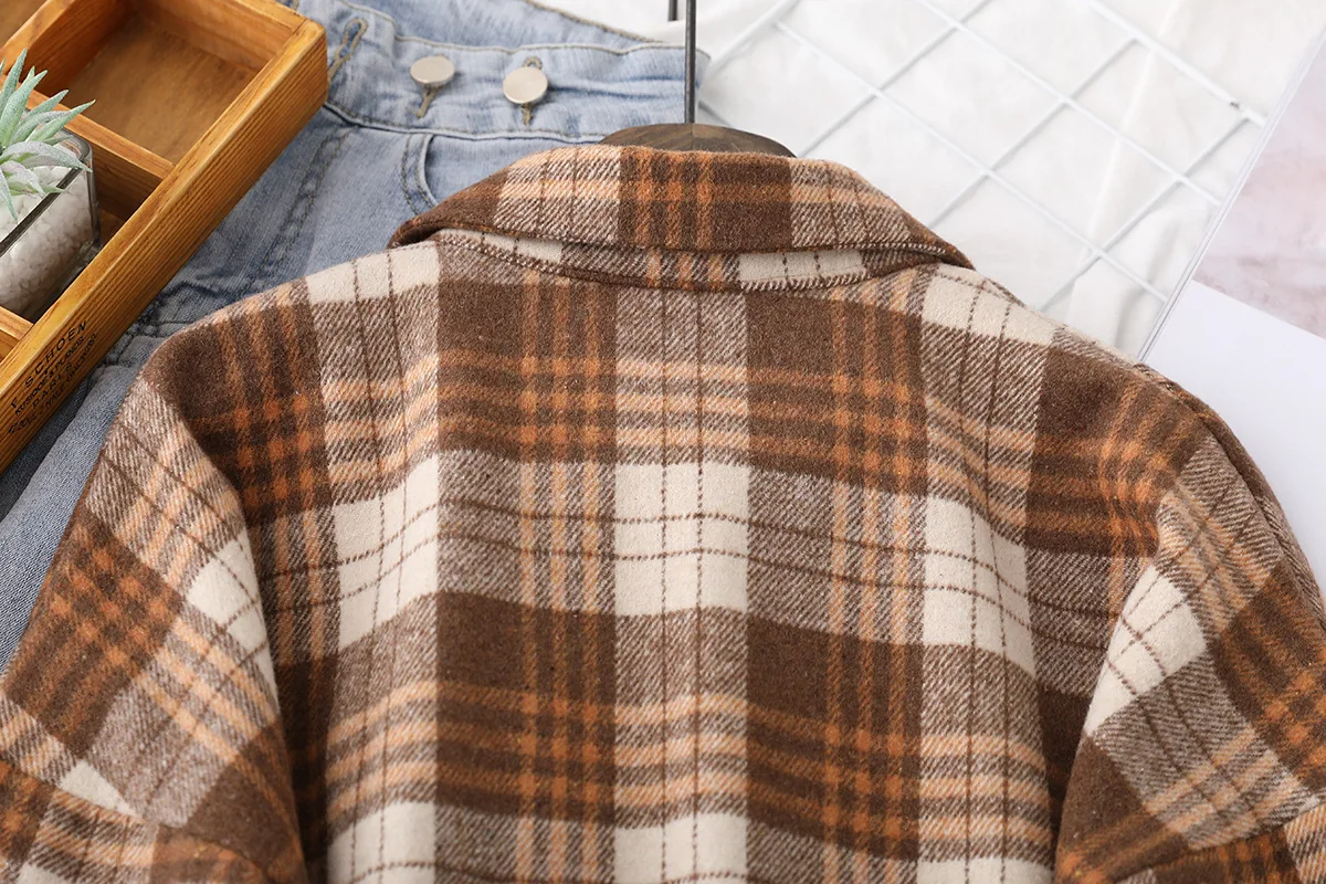 Зимняя новинка, женская фиолетовая клетчатая плотная теплая шерстяная рубашка с длинным рукавом, куртка, винтажные Топы больших размеров, стильная Весенняя верхняя одежда для девочек, T0N436T