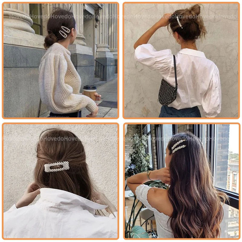 Заколка для волос женская, с жемчугом, геометрической формы, 1 шт.