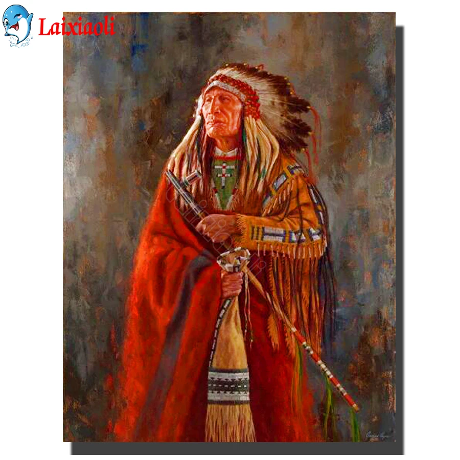 Алмазная вышивка, индейский человек, Алмазная мозаика, картина из страз, квадратная круглая вышивка крестом, картины для Стразы в американском стиле