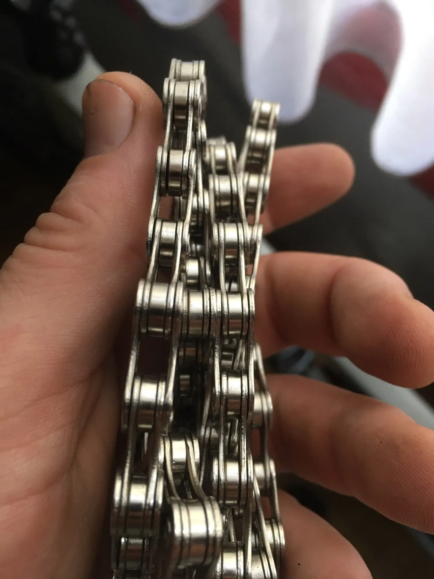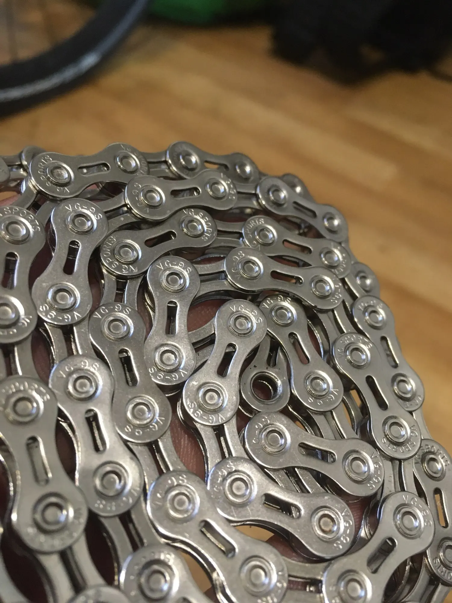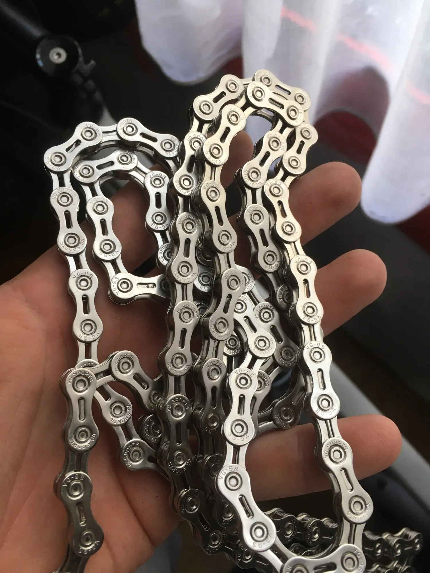 Заказал 10 скоростную полую серебряную цепочку. Продукт хорошего качества. Свет. Использовал цепь, чтобы восстановить мой старый горный велосипед Univega Aplina Pro. Быстрое подключение облегчило установку цепи. Заказал 6 марта 2021 года и получил 26 марта 2021 года. Из Китая в Сан-Diego California. Не взимается налог на импорт или пошлина, которая является хорошей. Мне нравится цепочка и два инструмента, с которыми она поставляется.