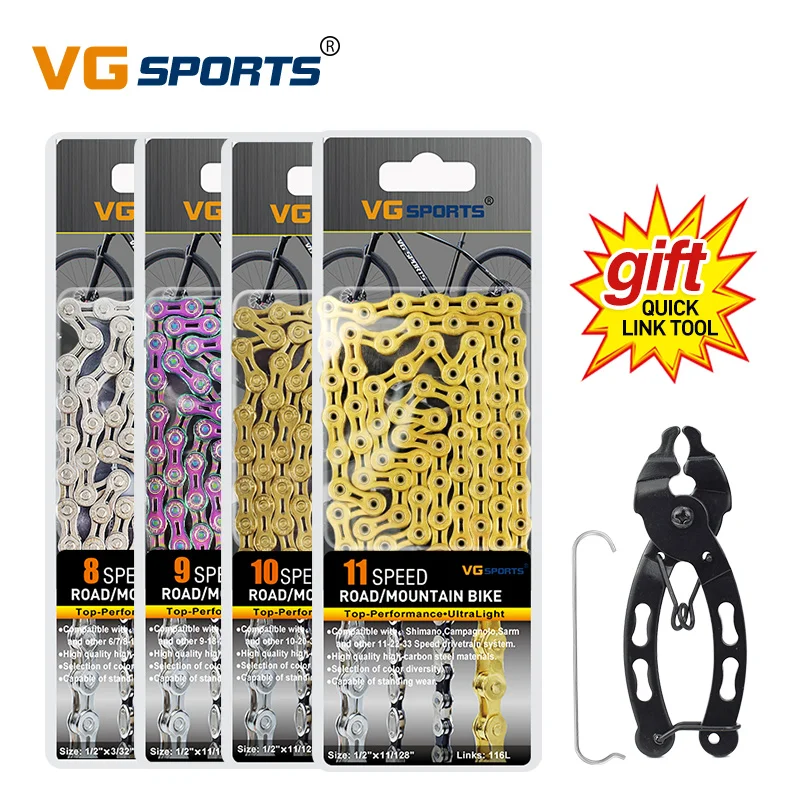 VG Sports 6, 7, 8, 9, 10, 11, цепь для скоростного велосипеда, титановая Радужная, золотистая, серебристая цепь для горного шоссейного велосипеда, деталь 116 звеньев