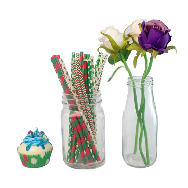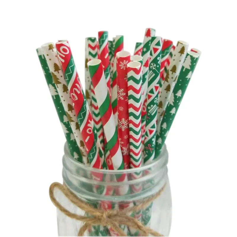 Одноразовые рождественские бумажные соломинки, биоразлагаемая крафт...