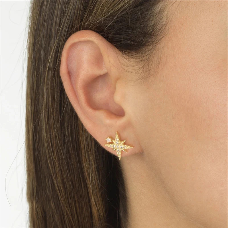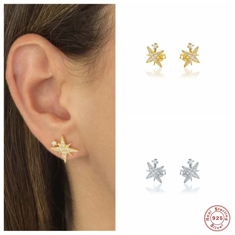 Aide 925 серебряная звезда корейские сережки-шпильки, блестящее циркониевое Стразы серьга в форме пентаграммы для женщин Brincos Boucle D'oreille