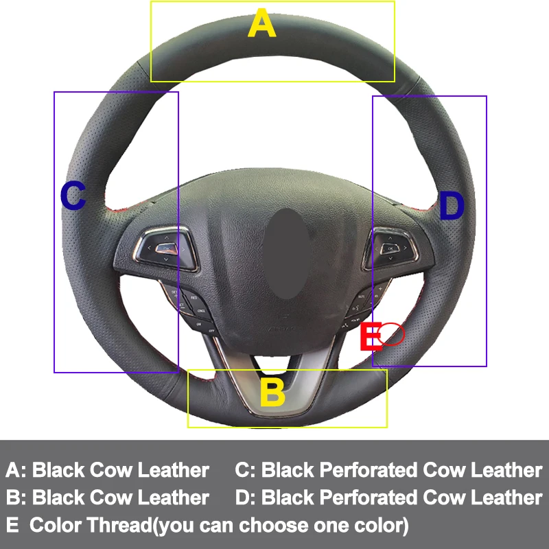 Рука шить чехол рулевого колеса автомобиля из коровьей кожи Обёрточная бумага для Линкольн МКС 2015-2019 MKZ 2013- 2020 MKZ Hybrid 2013-2019 MKX 2016-2018