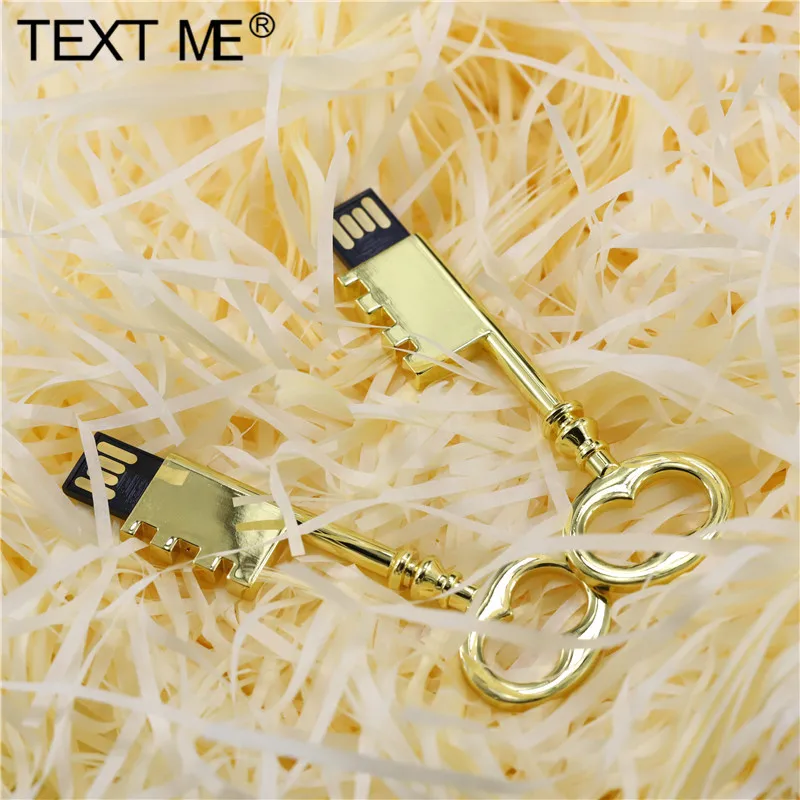Напиши мне 64 Гб красивое золотистое ключ USB 2,0 ГБ 4 ГБ 8 ГБ 16 ГБ флэш-накопитель 32 GB Оперативная память творческие USB флэш-накопитель подарок USB флешки