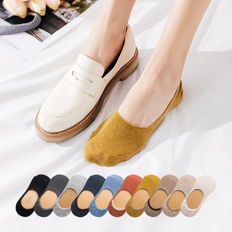 5 пар; Сезон весна-лето; Женские носки; Однотонные; Модные; С закры...