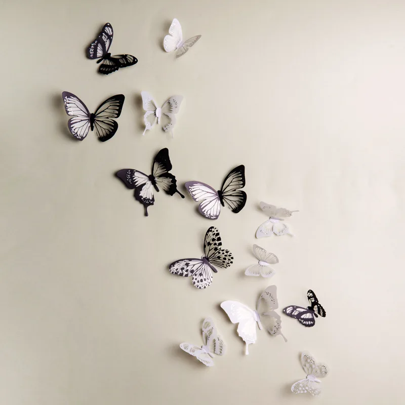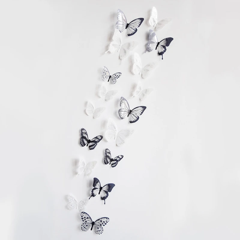 18 шт. черно-белых кристаллов с 3d-эффектом стикер на стену с бабоч...
