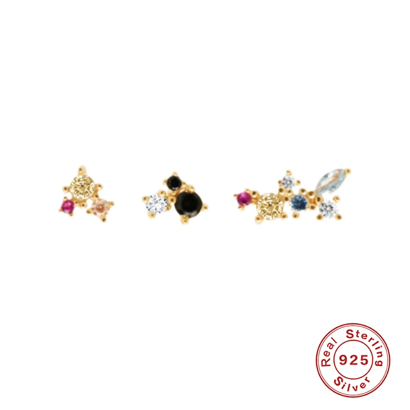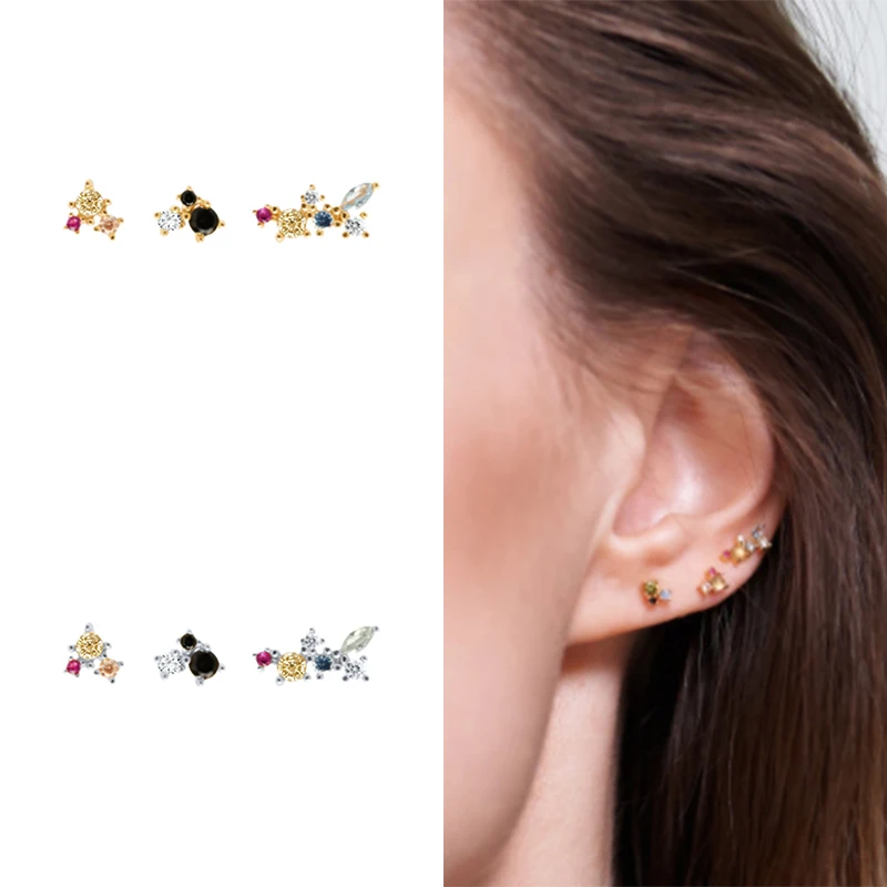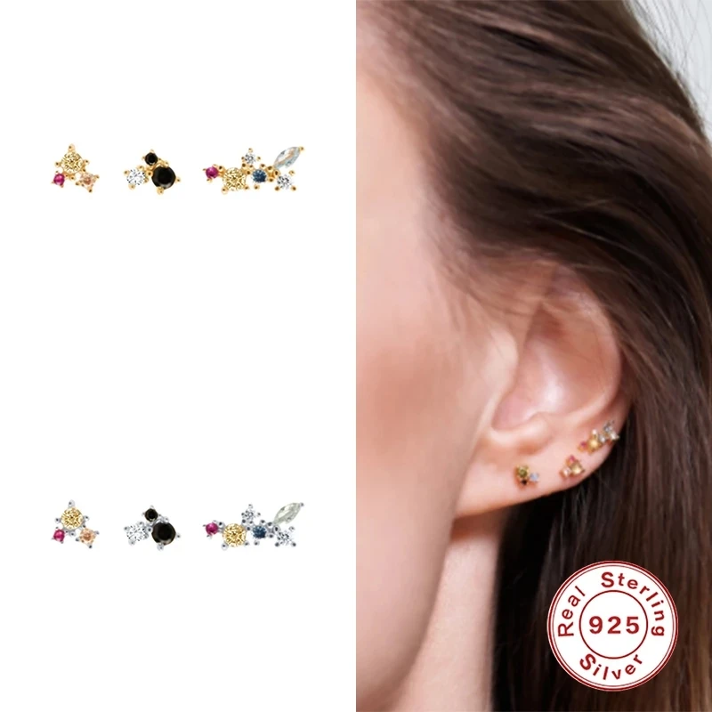 Серьги-гвоздики из стерлингового серебра 925 пробы с тремя цветными цирконами для женщин Простые пирсинг Ohrringe Pendientes Fine Jewelry 3 шт./компл.