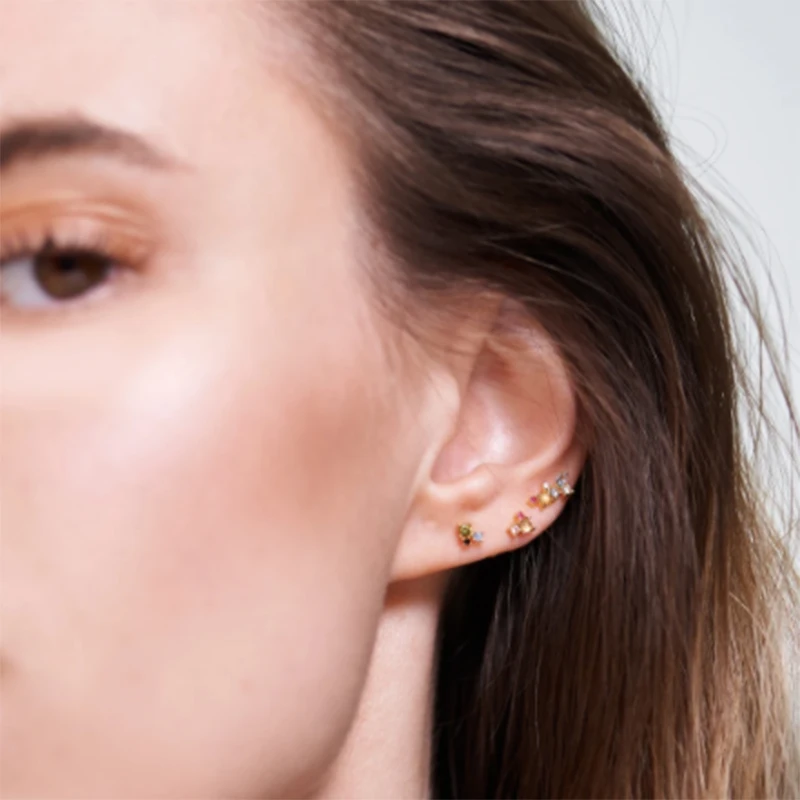 Aide 925 стерлингового серебра красочные три циркон серьги-гвоздики для женщин простой пирсинг Ohrringe Pendientes ювелирные украшения 3 шт.компл.