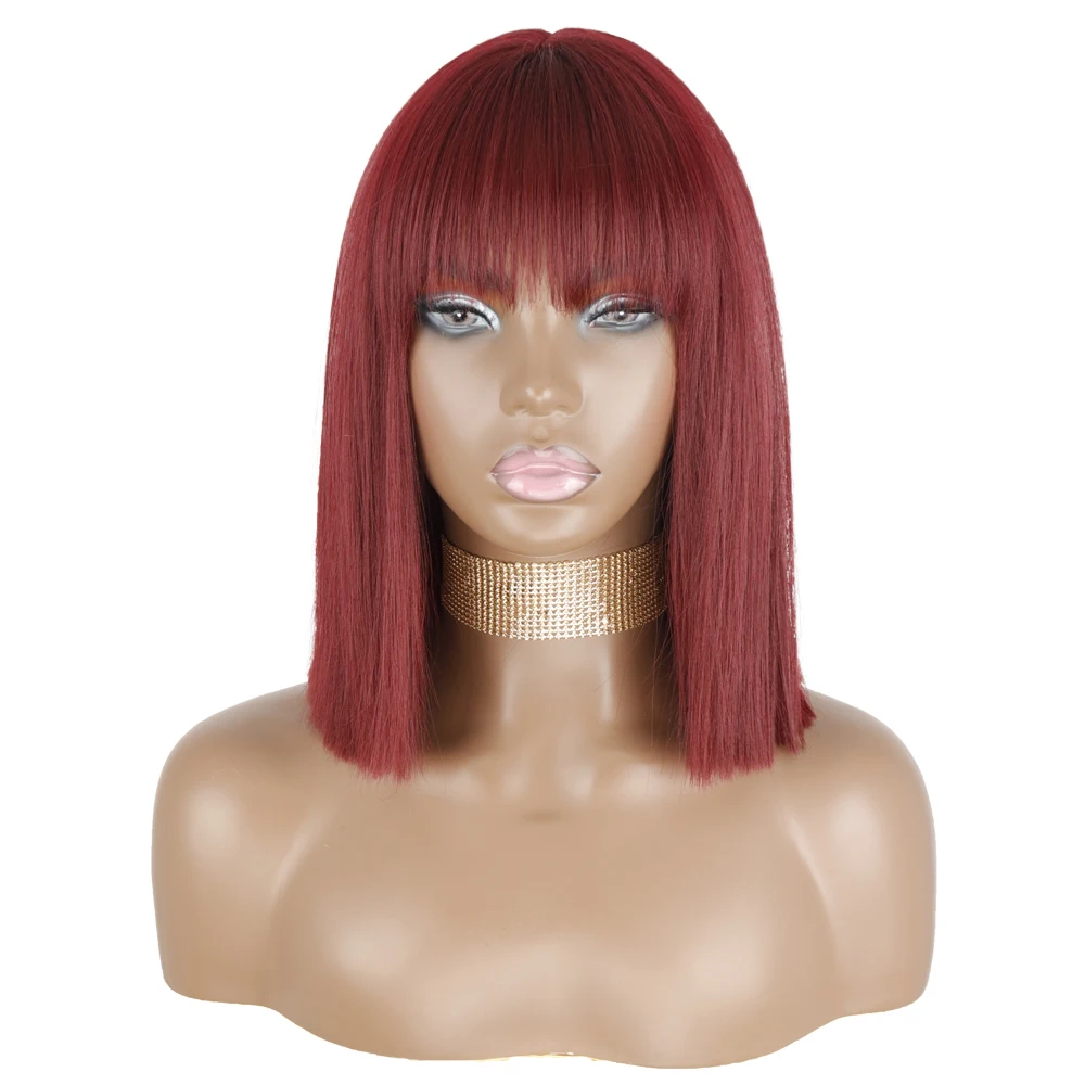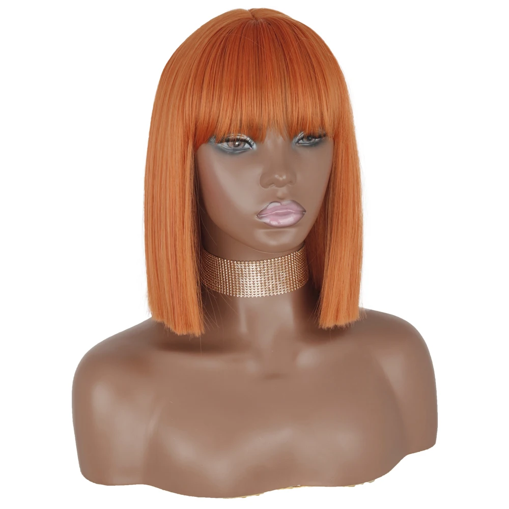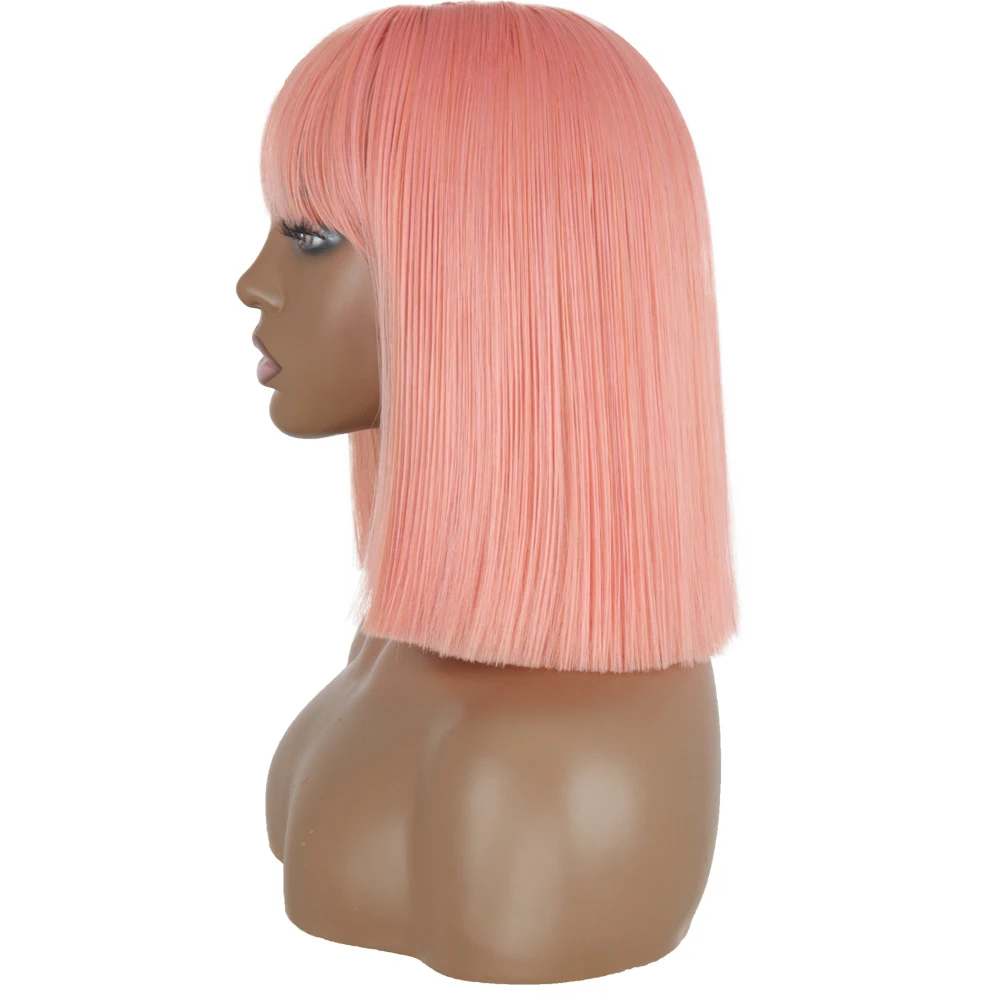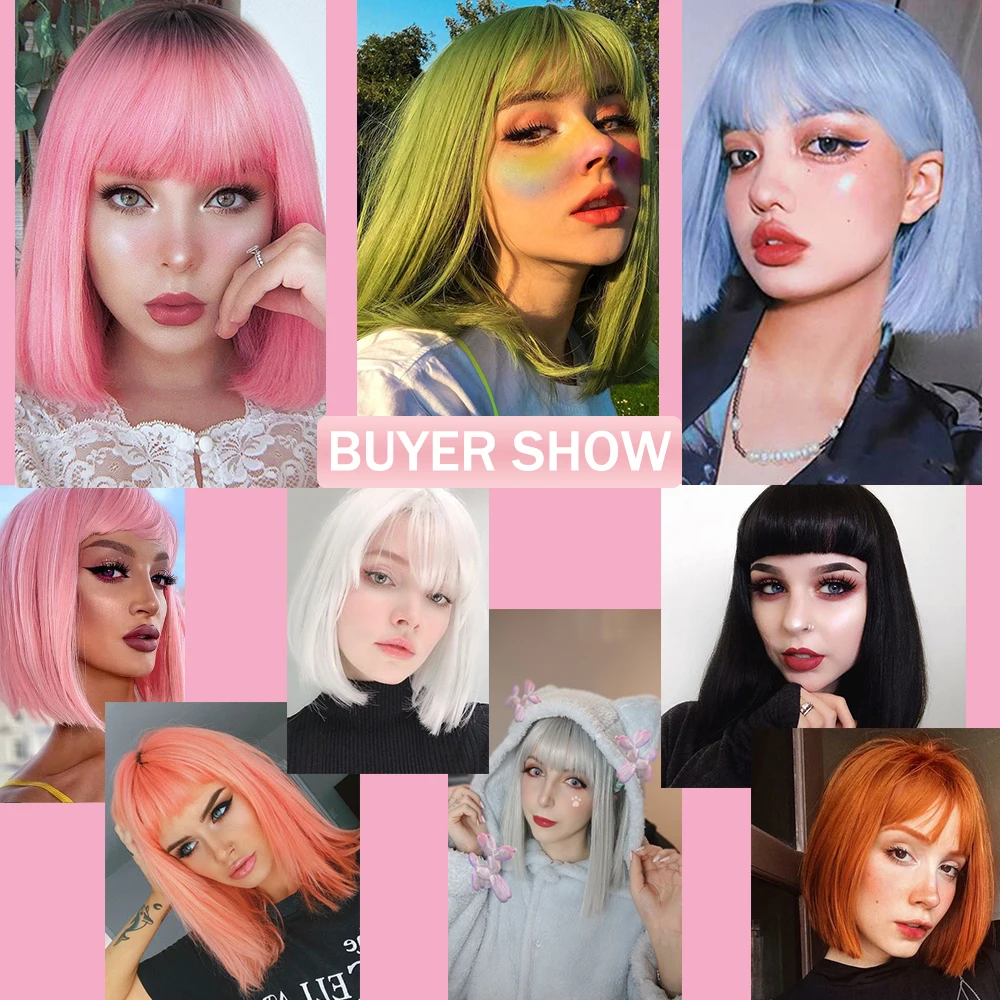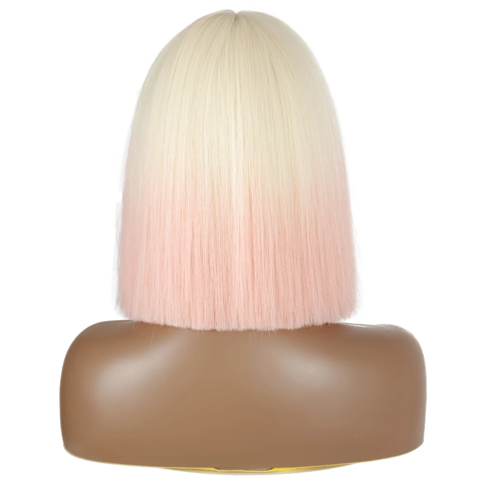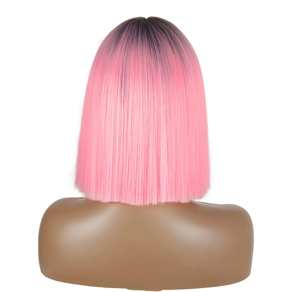 Прямой парик AZQUEEN, короткий, с челкой, женский, синтетический, черный, розовый, для ежедневного использования, длина до плеч