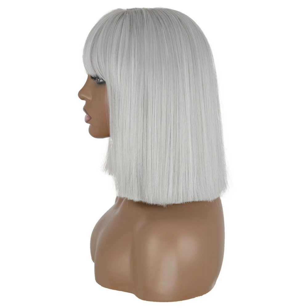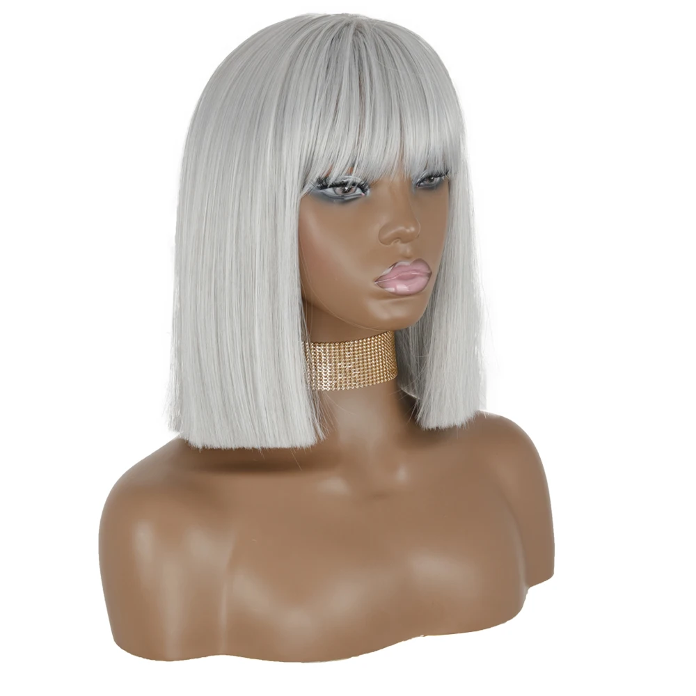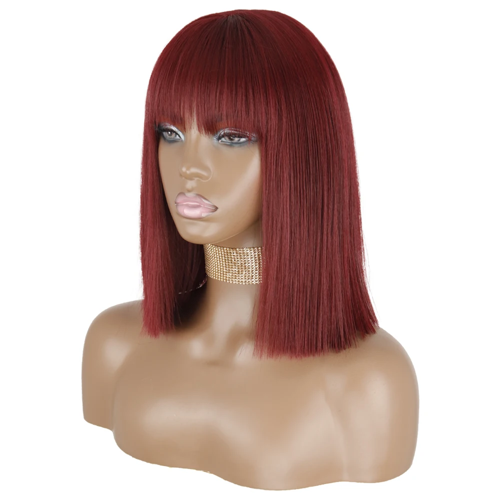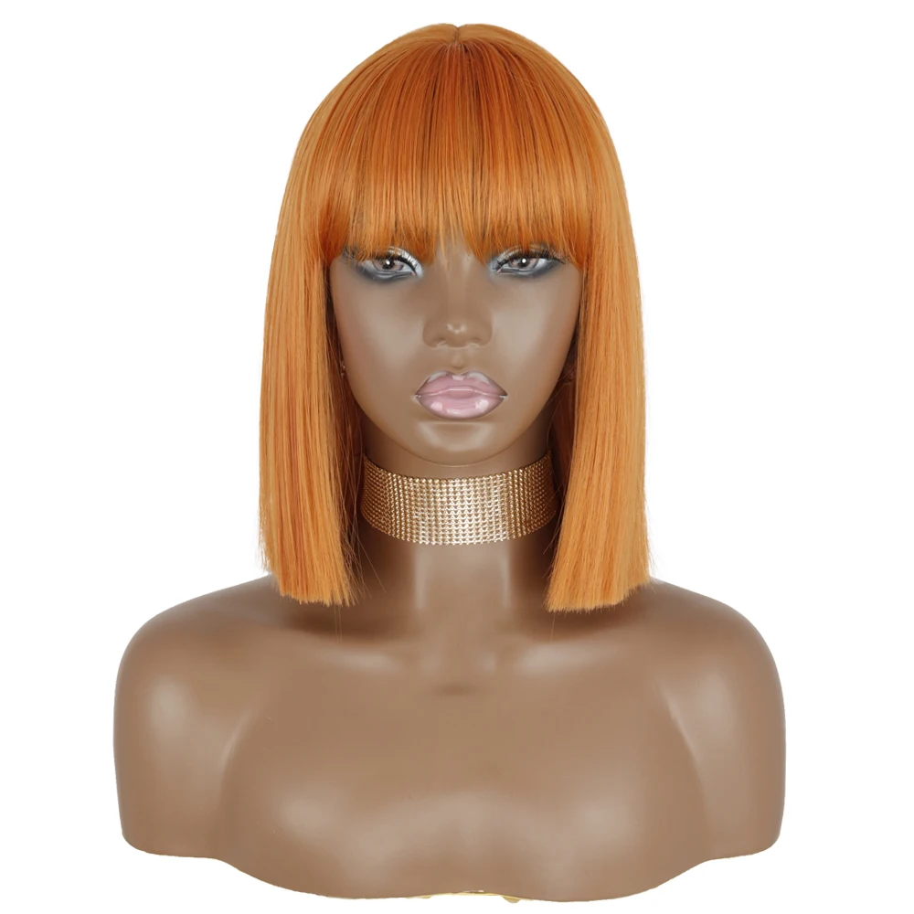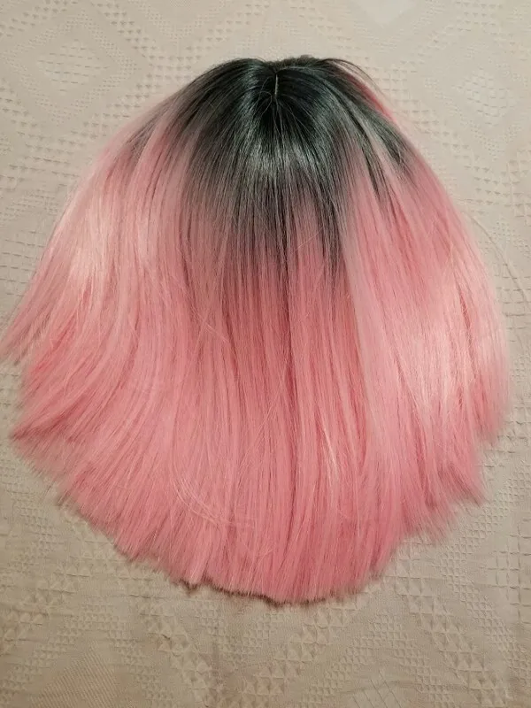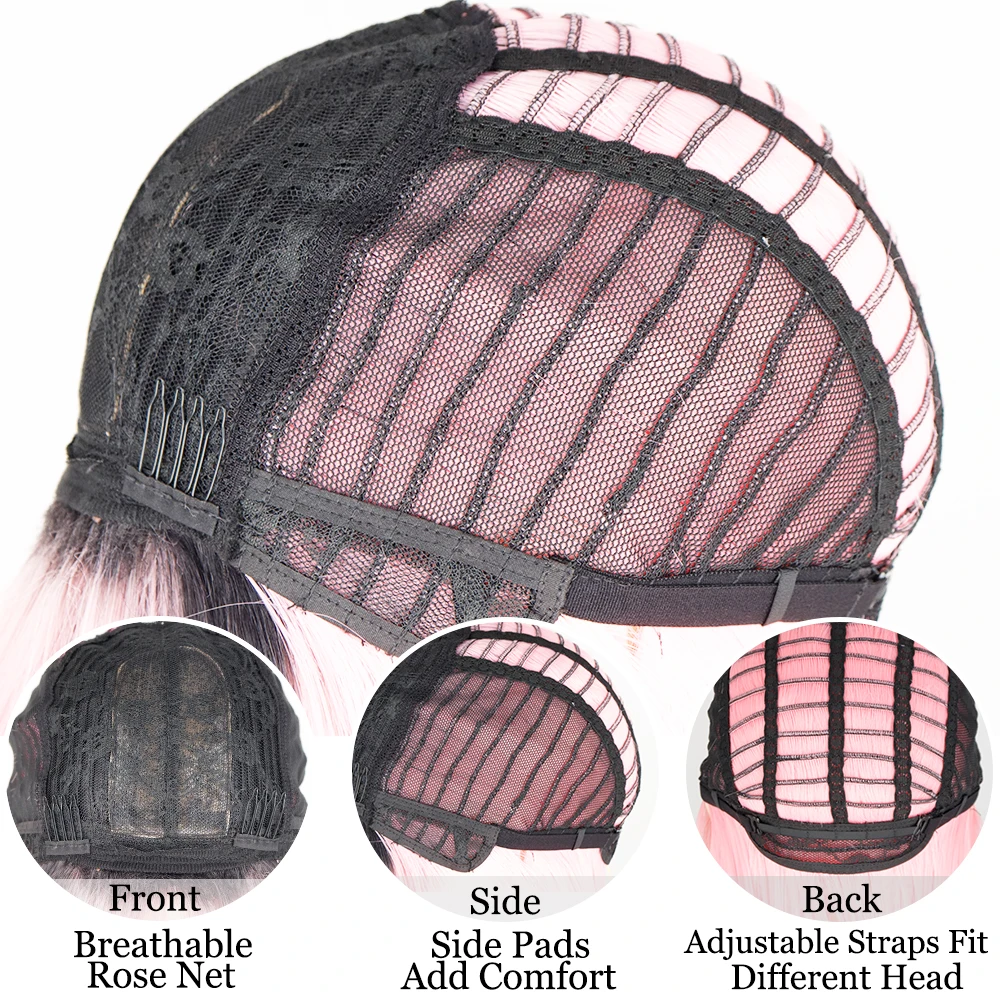 Прямой парик AZQUEEN, короткий, с челкой, женский, синтетический, черный, розовый, для ежедневного использования, длина до плеч