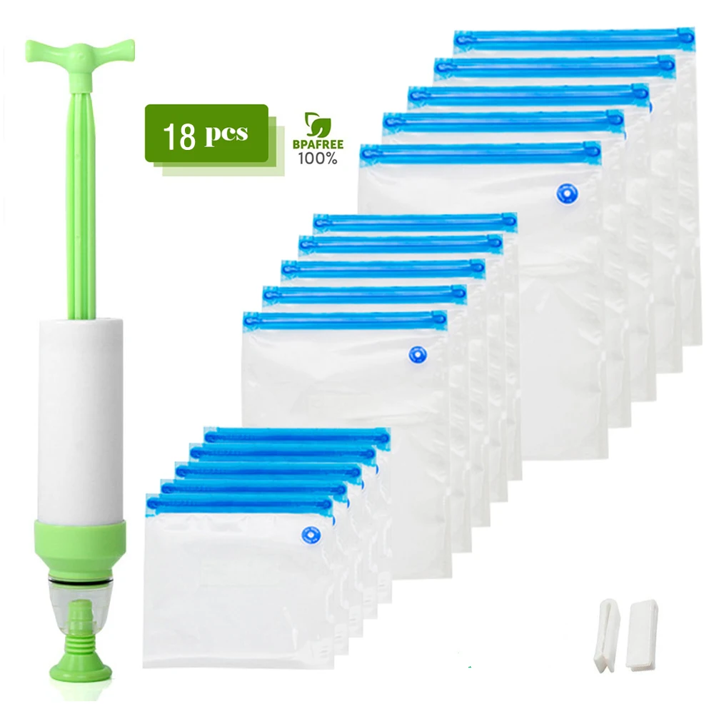 Пакеты для хранения пищевых продуктов, многоразовые, с ручным насосом, 1817 шт.