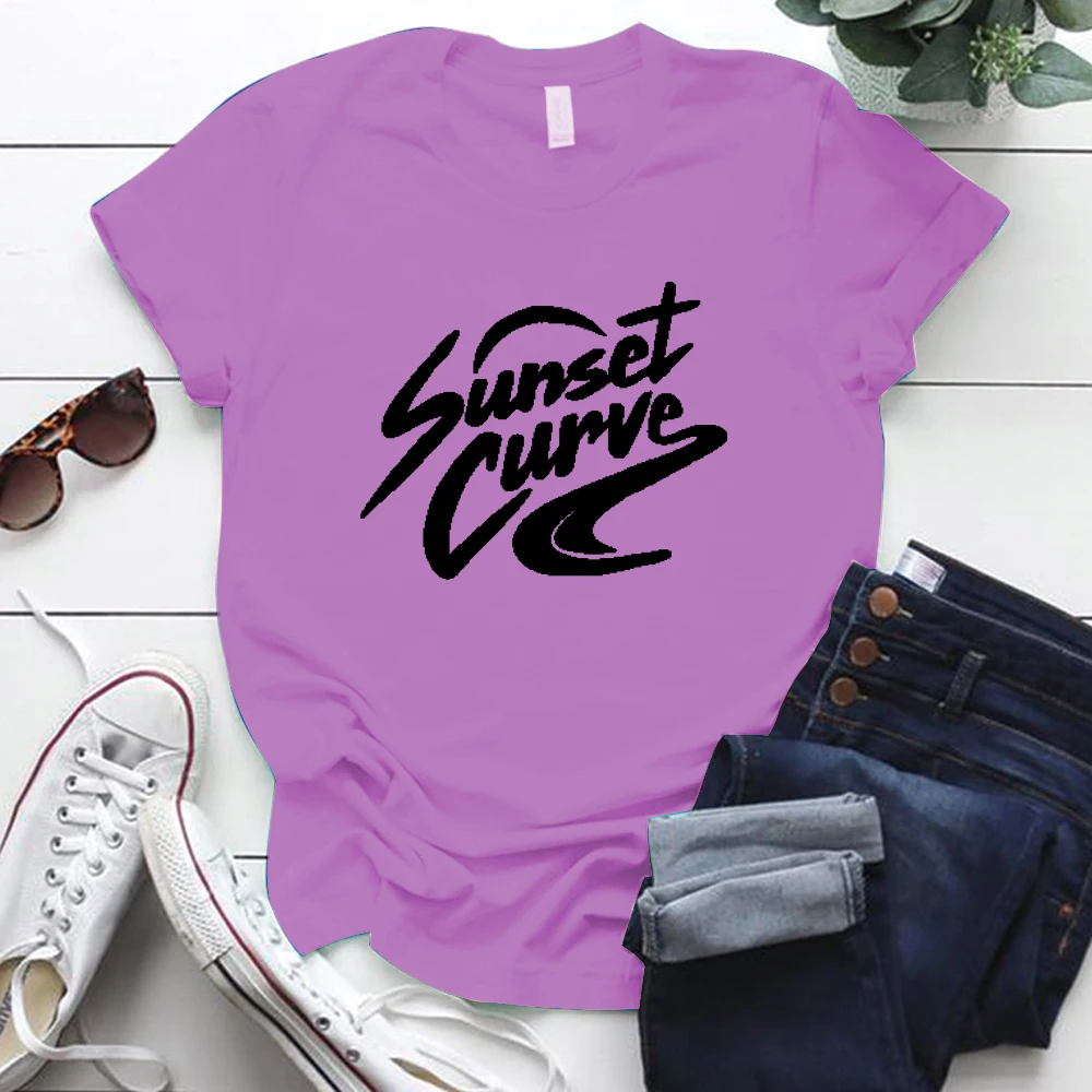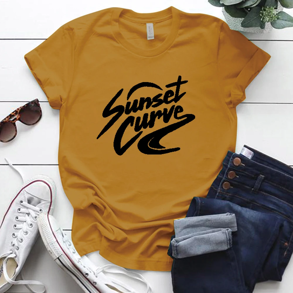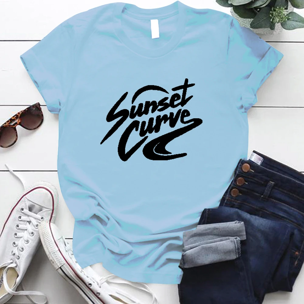 Женская футболка с коротким рукавом, круглым вырезом и принтом заката, женские футболки