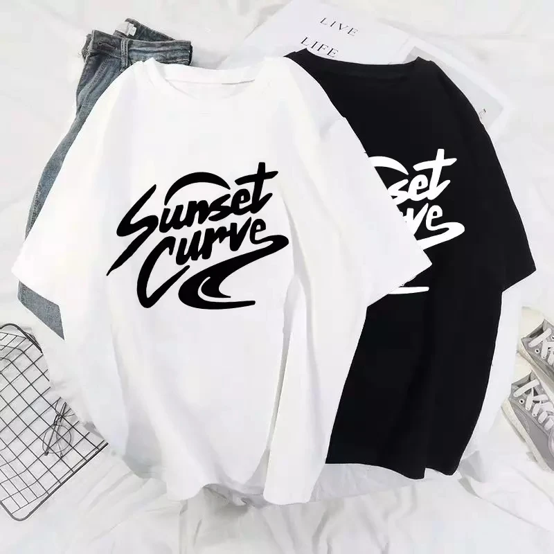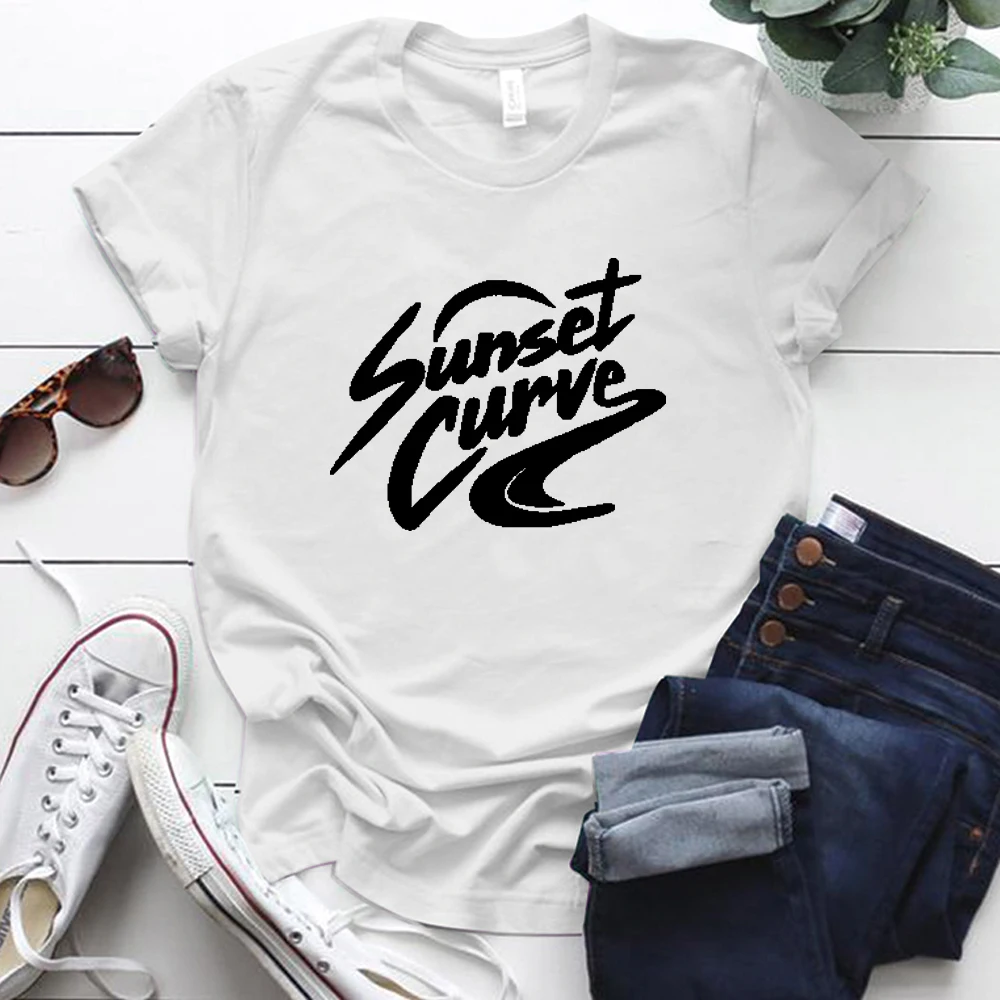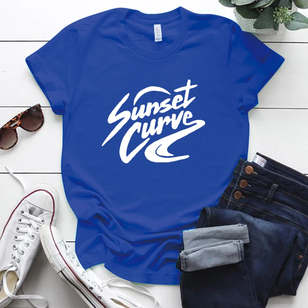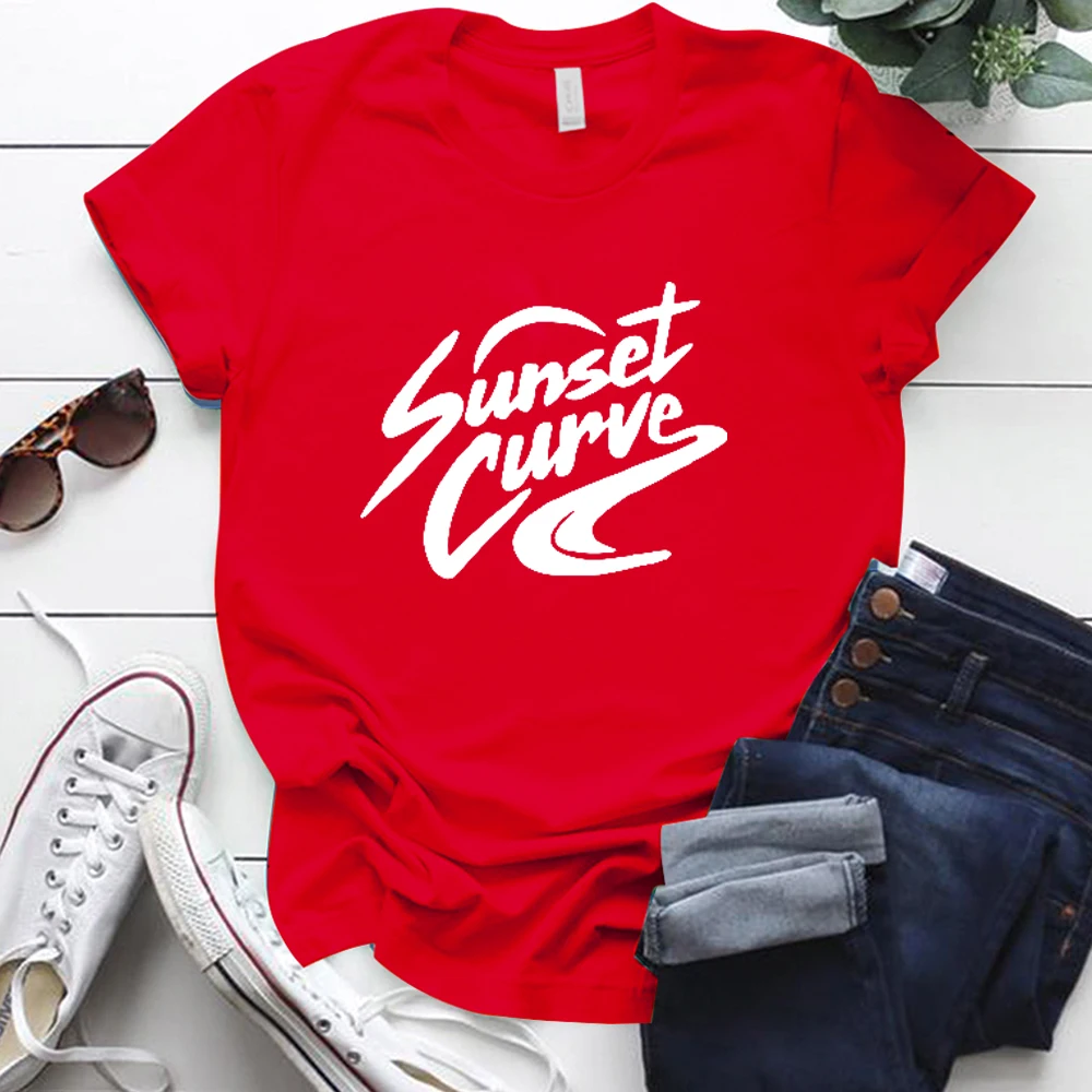 Женская футболка с коротким рукавом, круглым вырезом и принтом заката, женские футболки
