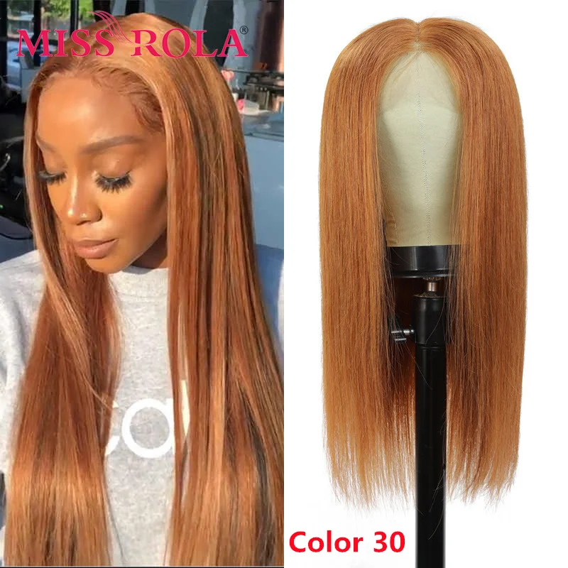 Miss Rola бразильские прямые парики на сетке 4*4, парики из 100% человеческих волос, цвет 30, коричневый парик без повреждений, предварительно выщипанные плотность 150%