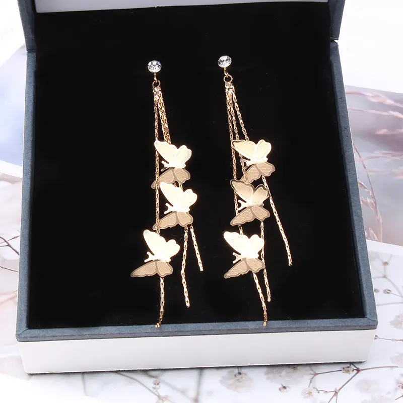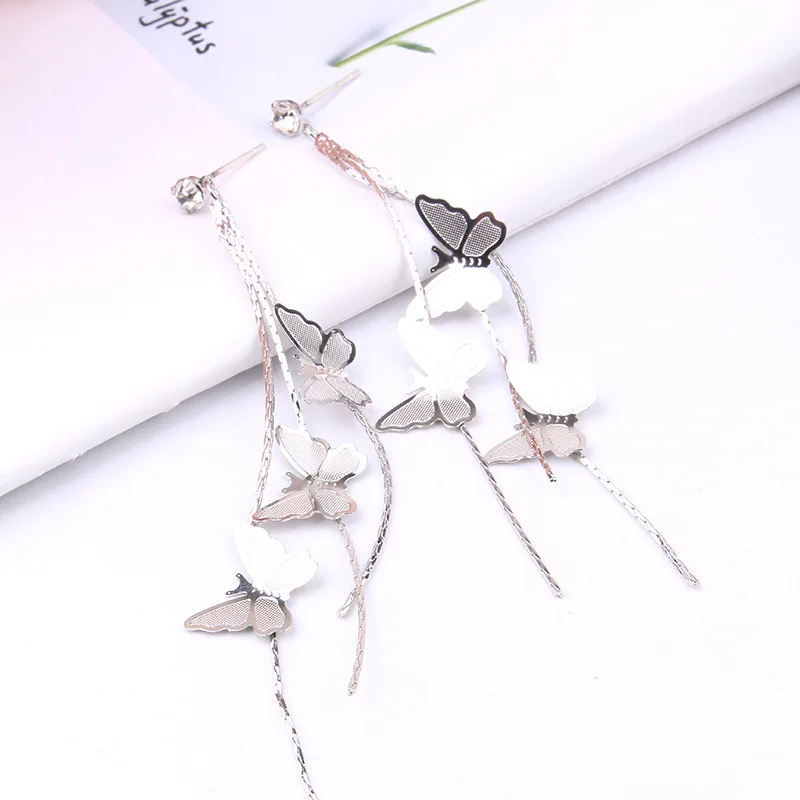 Висячие серьги с длинной кисточкой и бабочкой женские, милые ювелирные украшения серебряного цвета в виде иглы, летняя бижутерия, хороший подарок для девушек, 1 пара