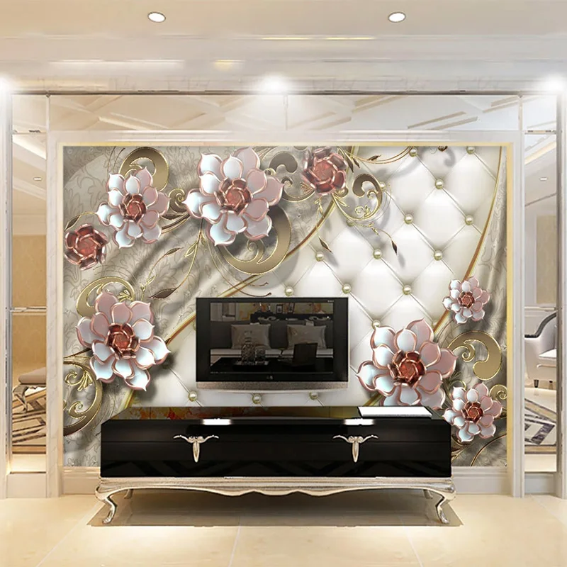 Пользовательские 3D Настенные обои Европейский стиль Роскошные 3D стерео розы Цветочная Роспись стен гостиная спальня Papel De Parede фрески