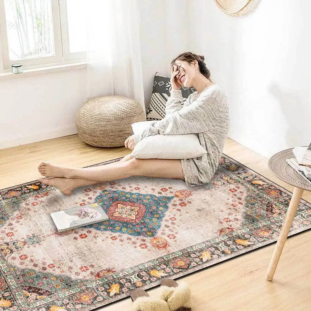 Ковер для гостиной, с принтом в стиле ретро, розовый, нескользящий