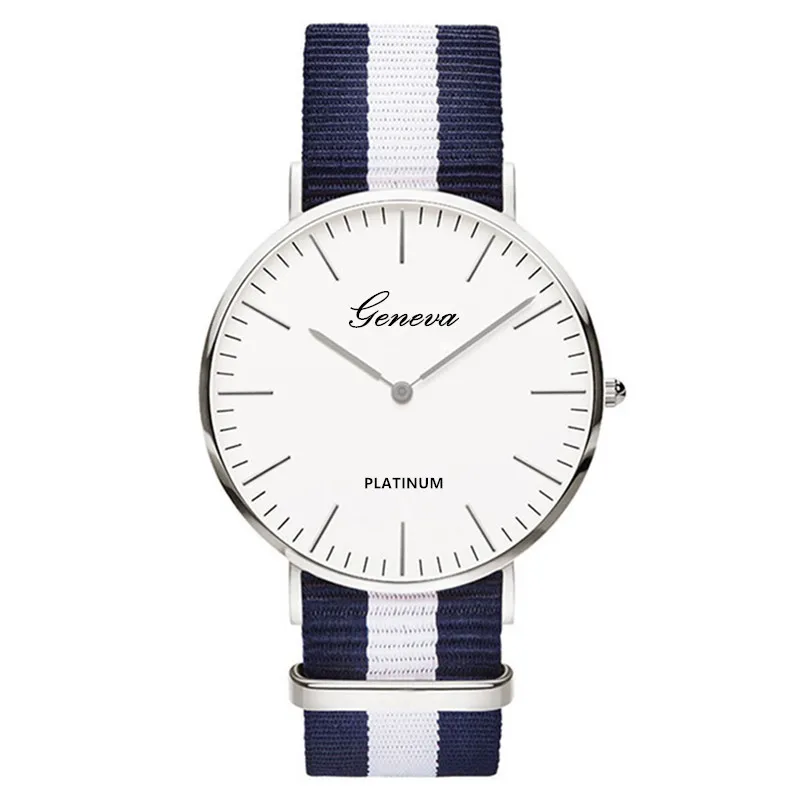 Женские и мужские кварцевые часы в полоску, с нейлоновым ремешком