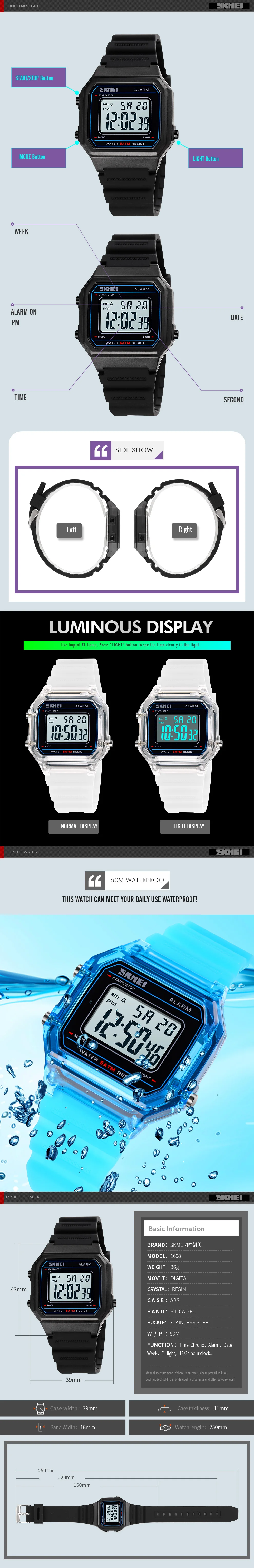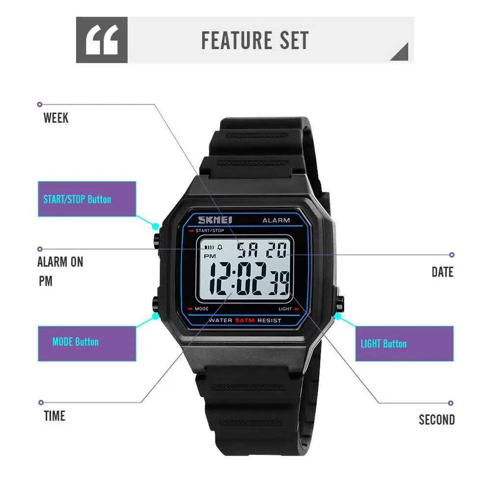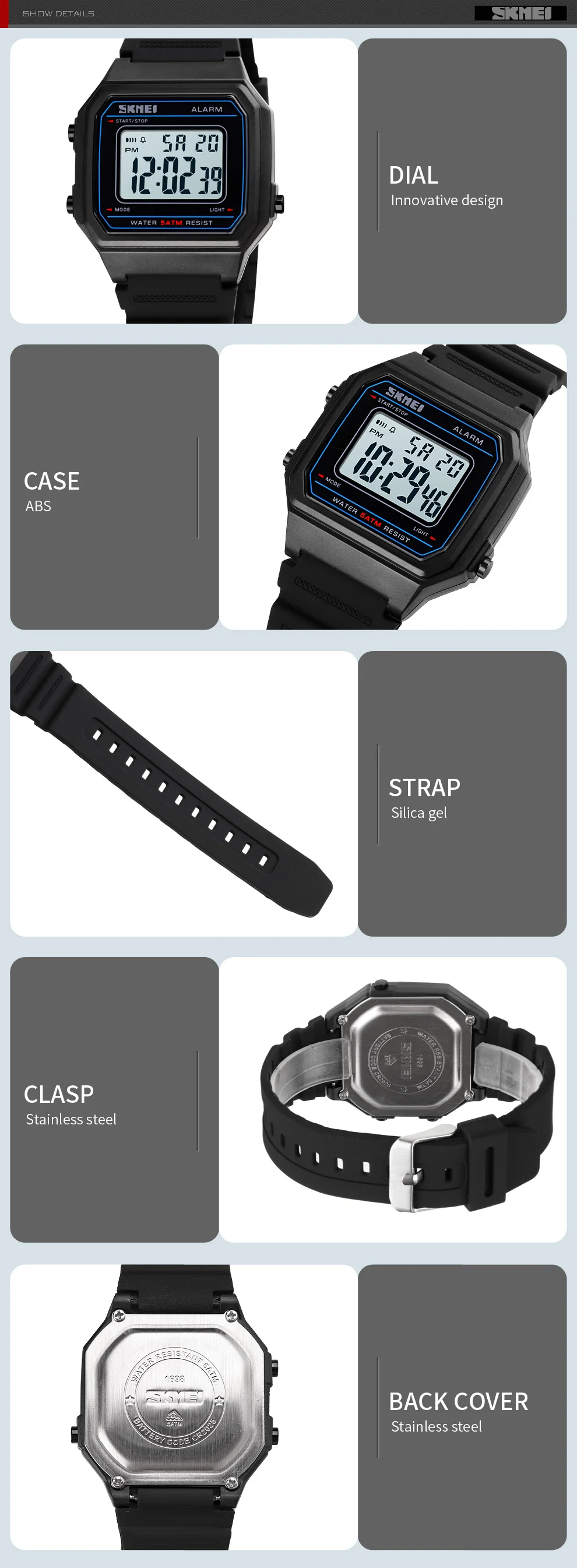 Часы наручные SKMEI Мужские Цифровые, светильник ные светодиодные электронные с хронографом, водонепроницаемые в стиле милитари, с будильником