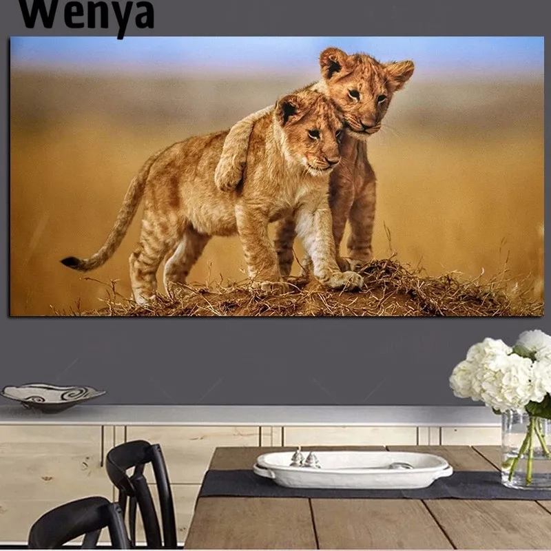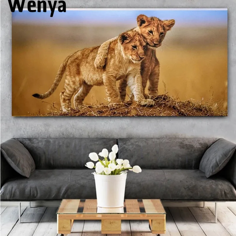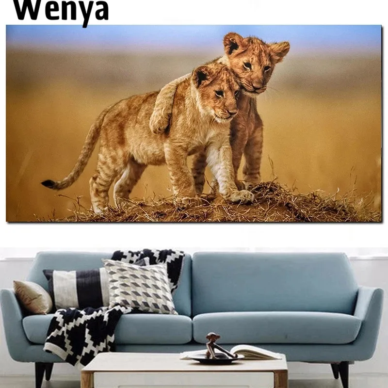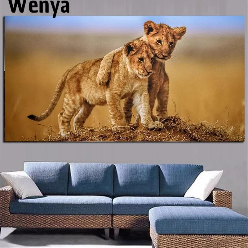 Домашний декор, африканские сестры, двойной Лев, куб, животное, холст, живопись, дикая фотография, фотообои для гостиной