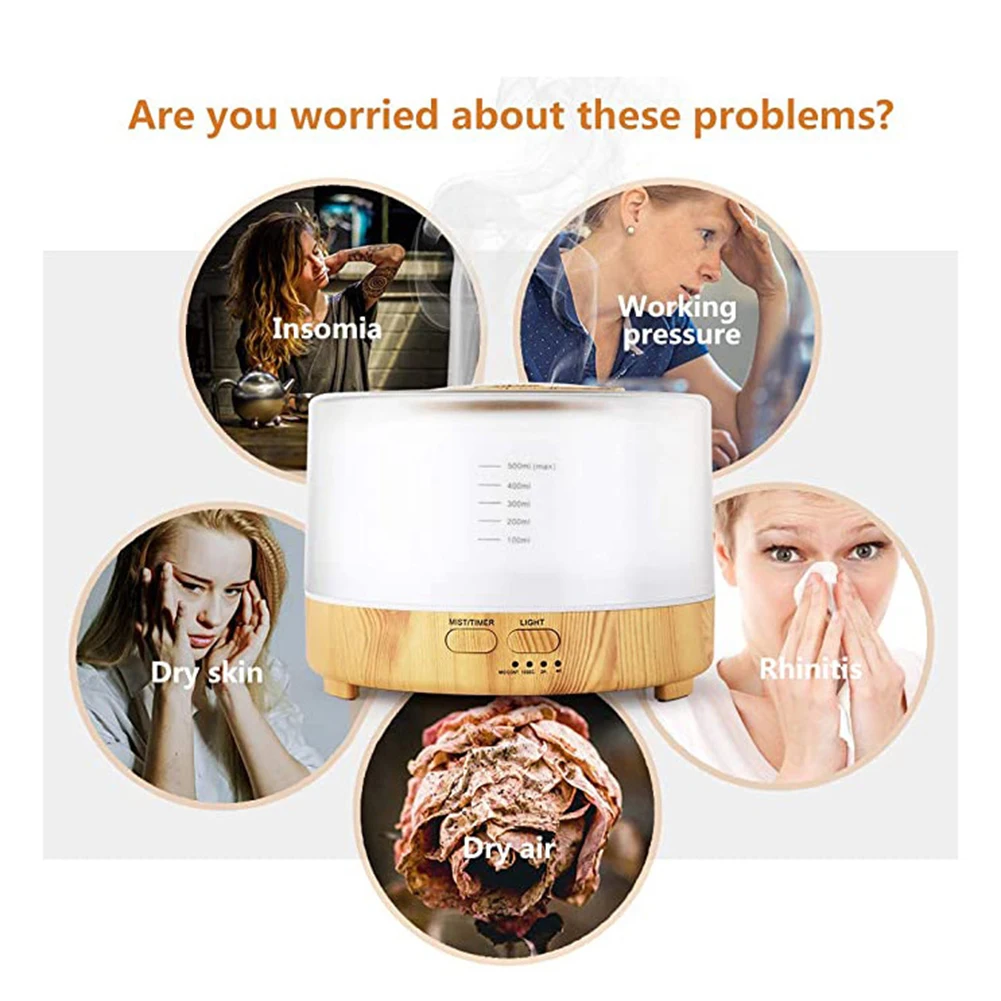 Аромадиффузор, 500 мл, ультразвуковой увлажнитель воздуха, очистите...