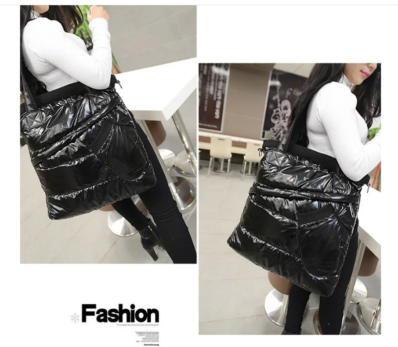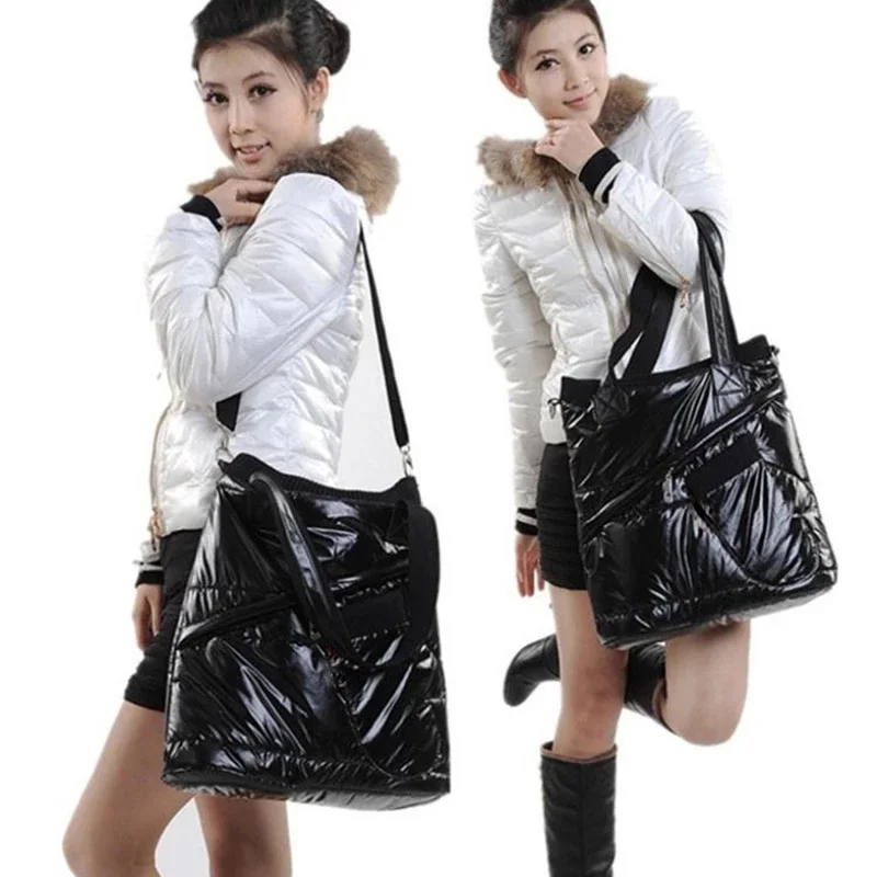 Сумка-тоут женская с пухом, модная зимняя вместительная хлопковая Сумочка через плечо, роскошный Теплый саквояж, большой черный клатч, 2020