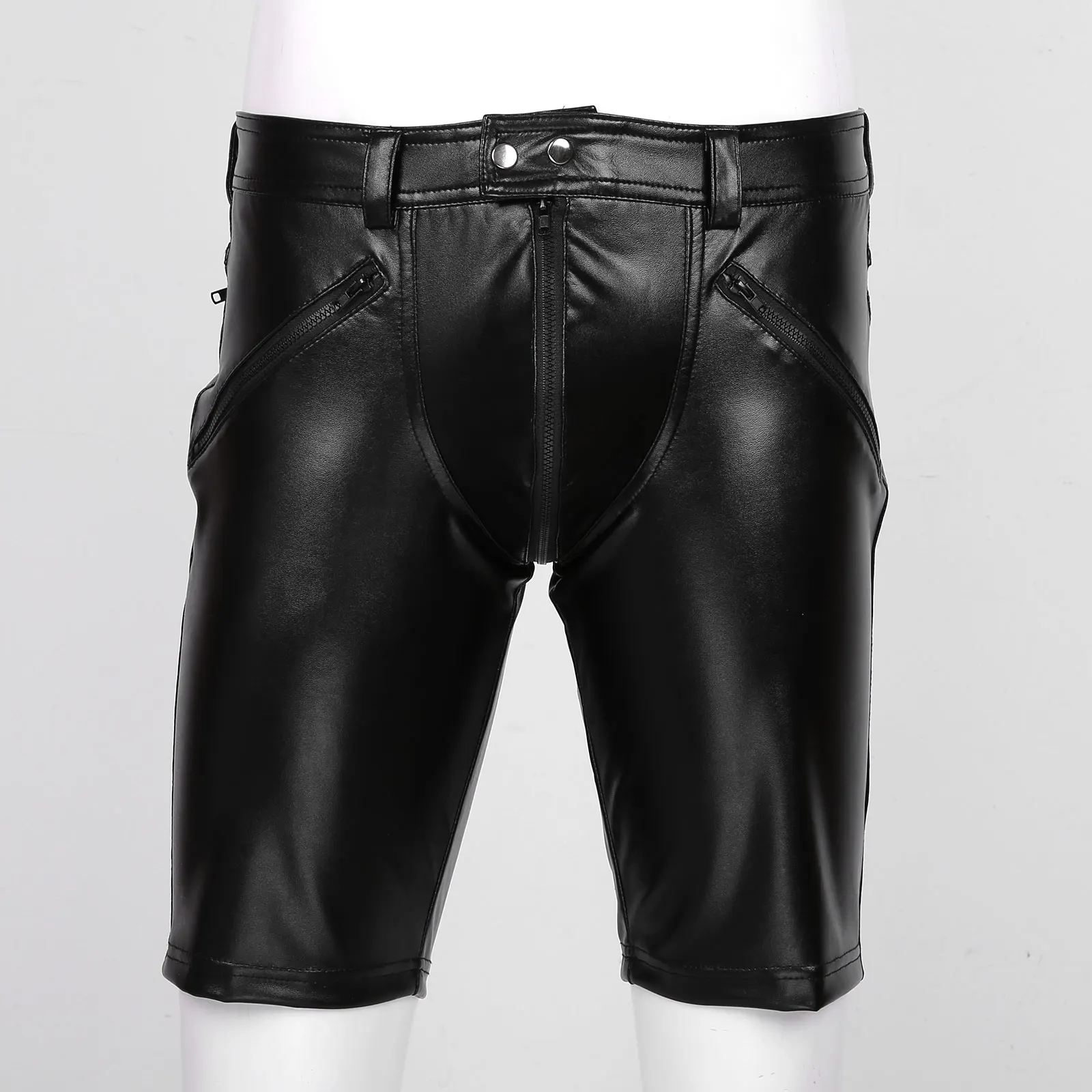 Шорты мужские кожаные, на молнии спереди, с застежкой спереди, M-XXL