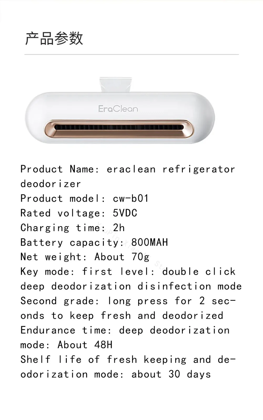 Дезодорирующий стерилизатор EraClean для холодильника, бытовой кухо...