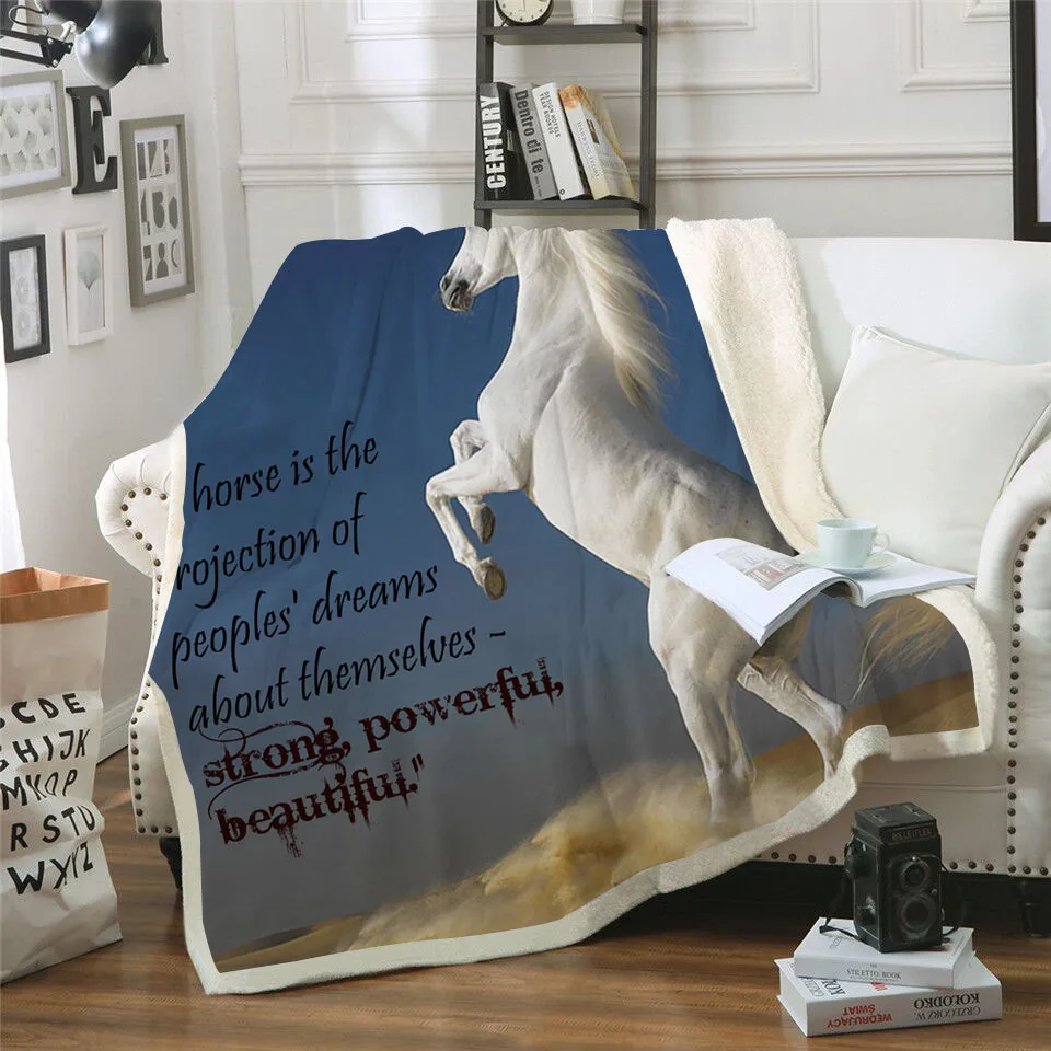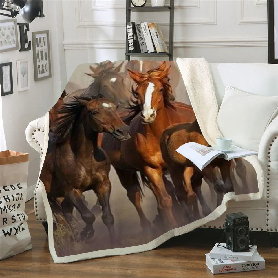 Флисовое одеяло с 3D-принтом "бегущая лошадь", для кровати, плотное...