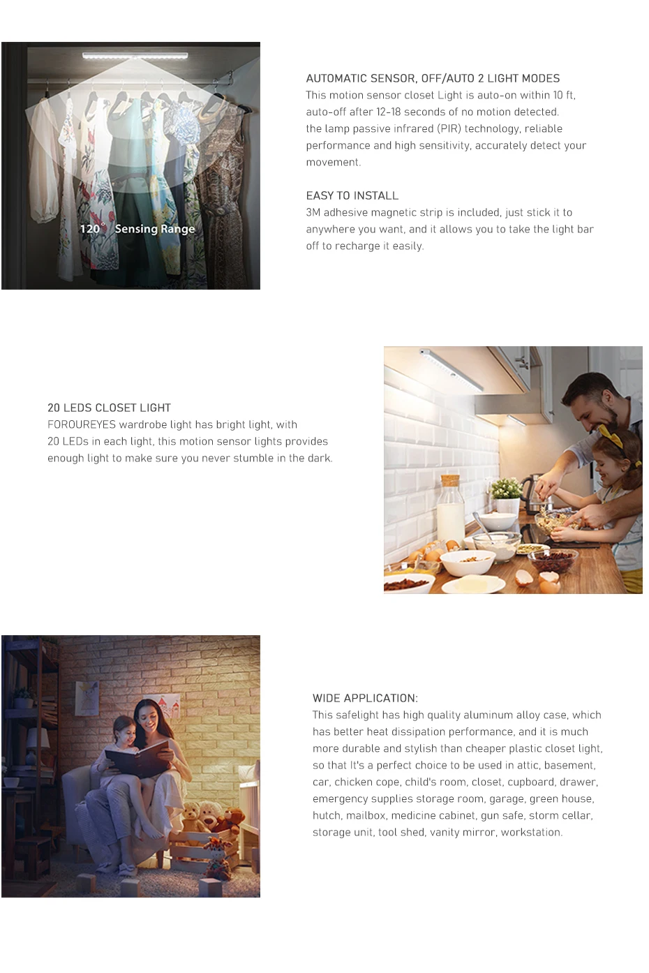 Описание: Светодиодная подсветка под шкаф светодиодная лампа с датчиком движения, 6/светодиодов, освещение для шкафа, шкафа, кухни, ночника Перезаряжаемый через USB, встроенный аккумулятор. Кабель Micro USB входит в комплект с любым национальным USB-зарядным устройством, зарядным устройством мобильный телефон или USB-портом вашего компьютера Автоматический датчик, ВЫКЛ./автоматический 2 режима освещения: Этот датчик движения pir Светодиодный светильник для шкафа автоматически включается на расстоянии 10 футов, автоматическое выключение через 15-20 секунд без обнаружения движения. Простота установки: клейкая лента с магнитными полями легко крепится и отстегивается от корпуса лампы.