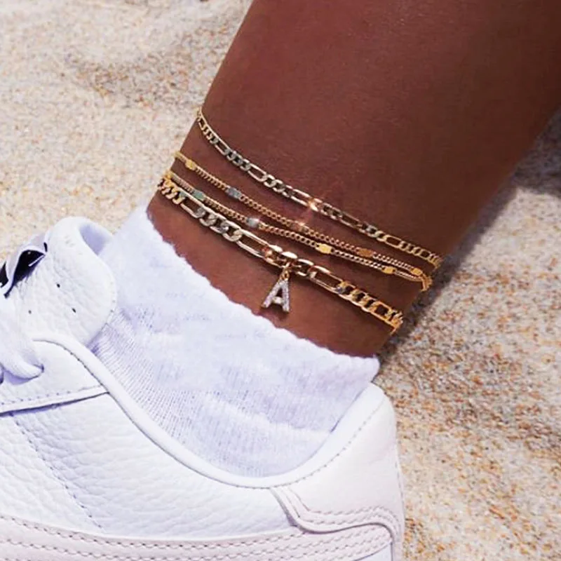 Анклет с буквами для Для женщин Нержавеющаясталь золотой стопы кубинской A-Z первоначальный алфавит анклет (браслет на ногу браслет ювелирные изделия Bijoux Femme (украшения своими руками)