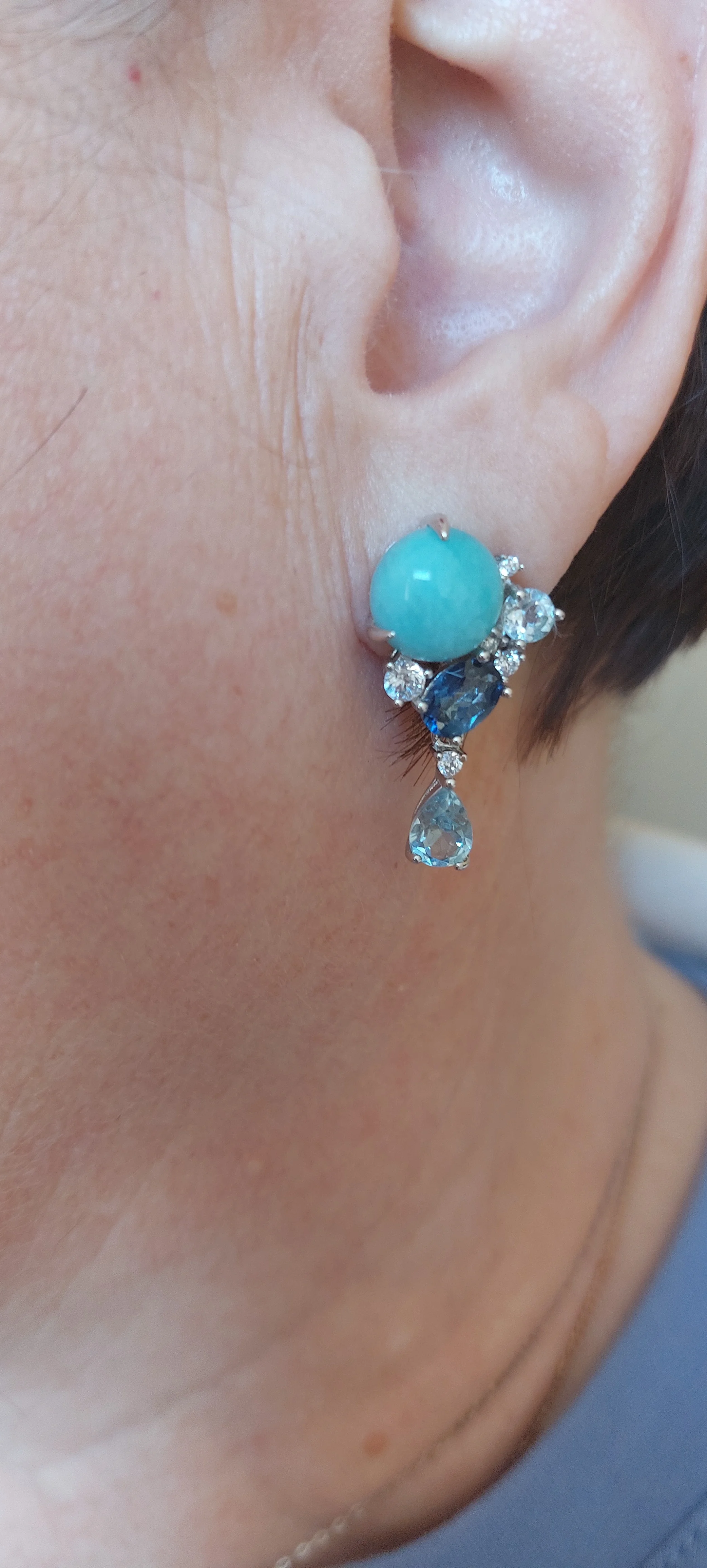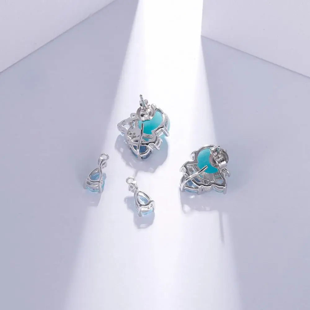 Женские серьги-гвоздики с натуральным амазонитом, из стерлингового серебра 925 пробы