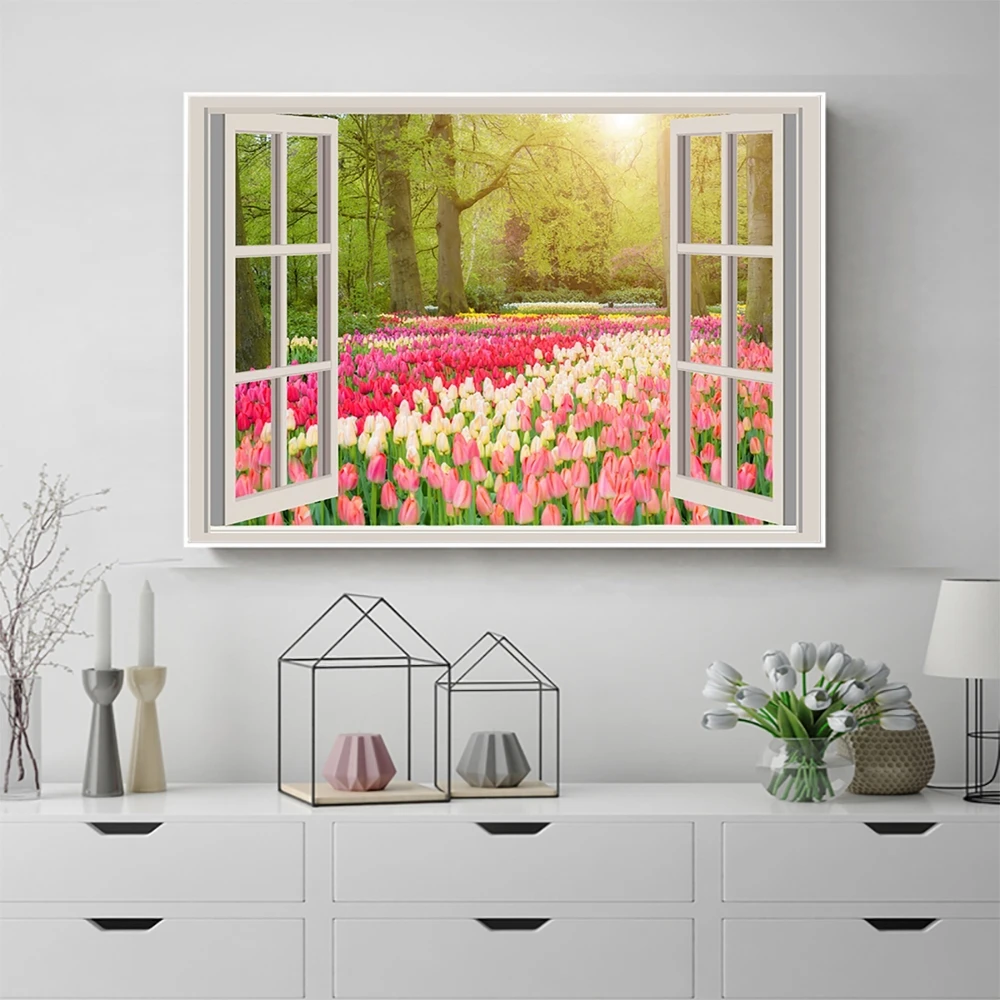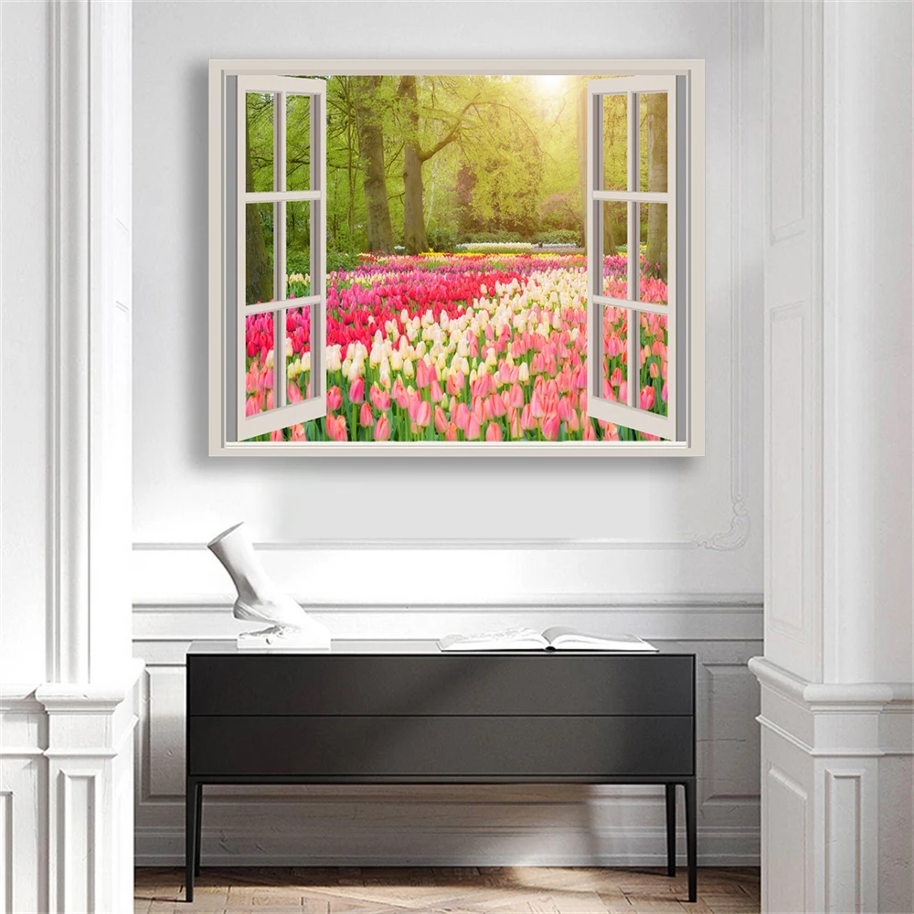 Цветочный сад пейзаж постер наружное окно креативная Картина на холсте Скандинавская Настенная картина Декор для дома комнаты коридора