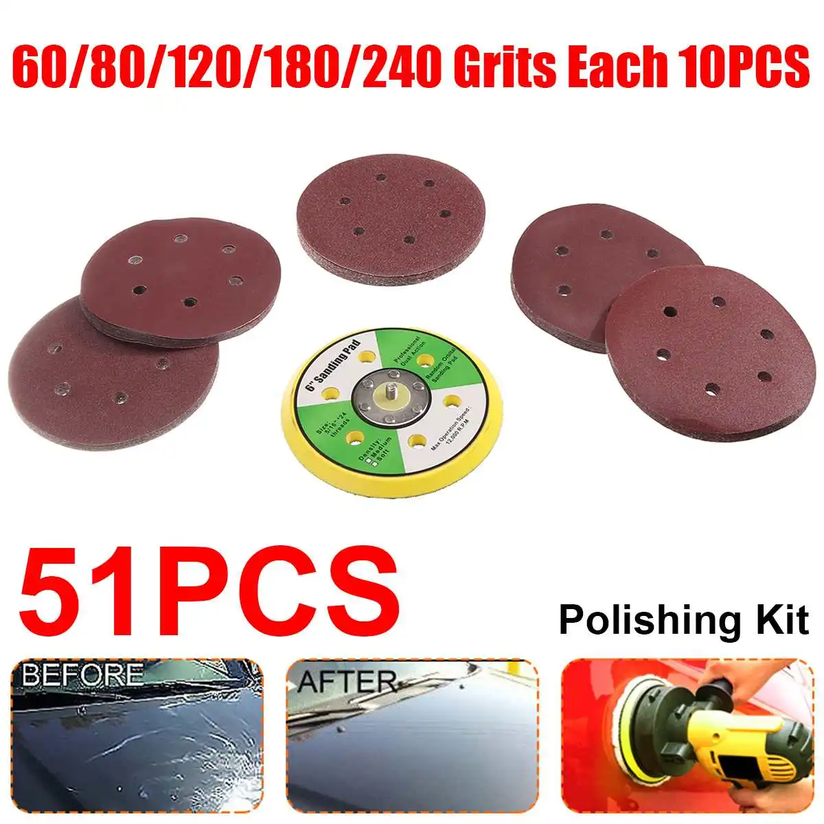 Новинка 52 шт. 150 мм круглые шлифовальные диски наждачная бумага восемь отверстий диск пескоструйные листы зернистость 6080120180240 крючок и петля полировка
