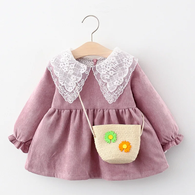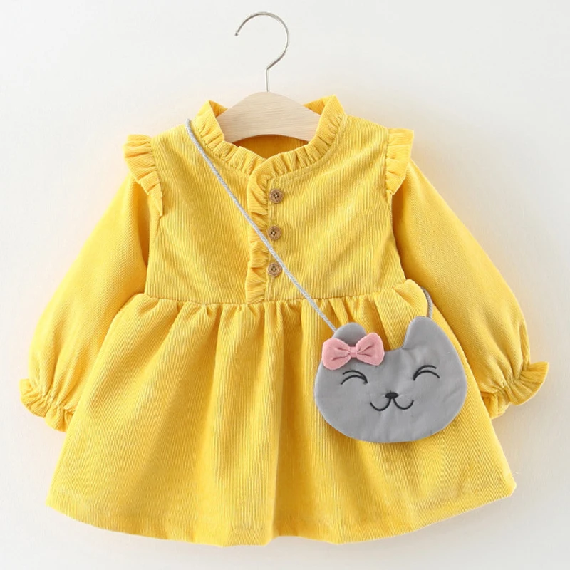 Одежда для маленьких девочек, осенне-зимнее вельветовое платье, милое и милое платье принцессы, плотное теплое платье, детское платье, отправка рюкзака