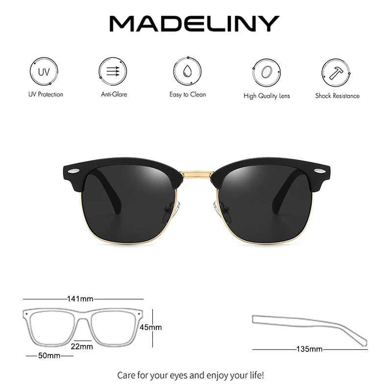 Солнцезащитные очки MADELINY MA317 мужскиеженские поляризационные, роскошные брендовые дизайнерские солнечные очки с полуободковой оправой, в винтажном стиле