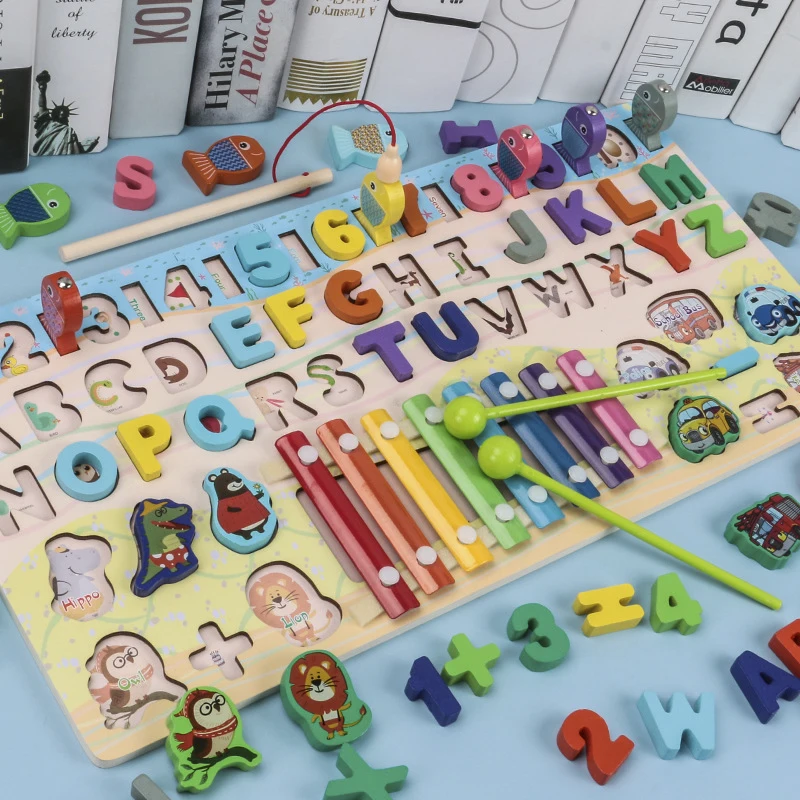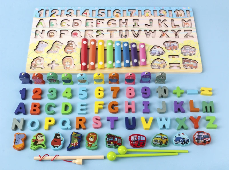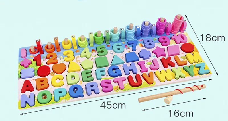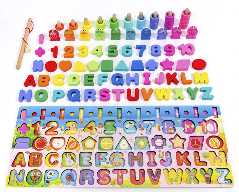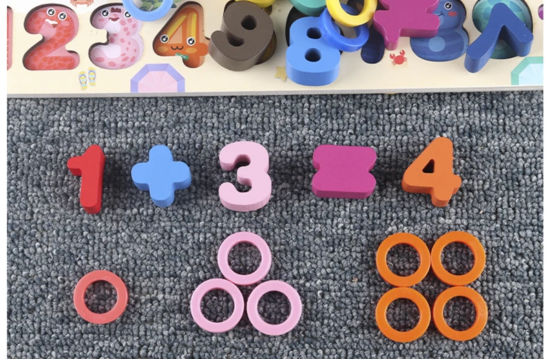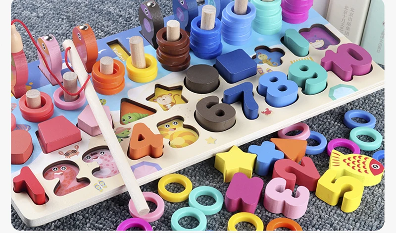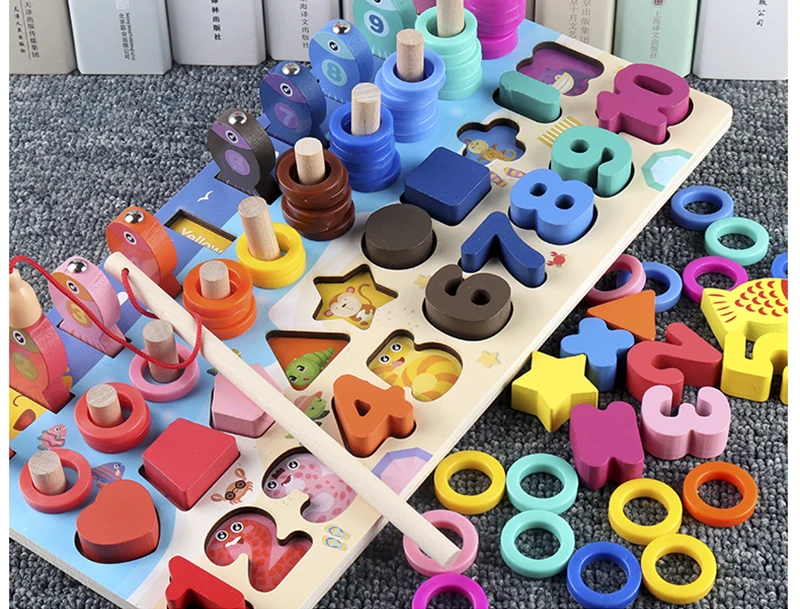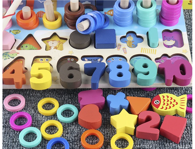 Деревянные 3D Строительные блоки Монтессори, арифметические учебные пособия, игра для рыбалки, Цифровая форма, подходящие строительные блоки, обучающие игрушки для детей icon star icon star icon star icon star icon star