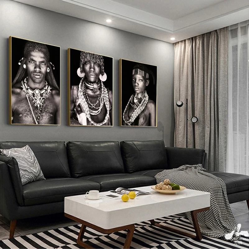 Настенная живопись в стиле африканского племени, Картина на холсте, плакаты и принты для женщин и мужчин, декоративные картины для гостиной