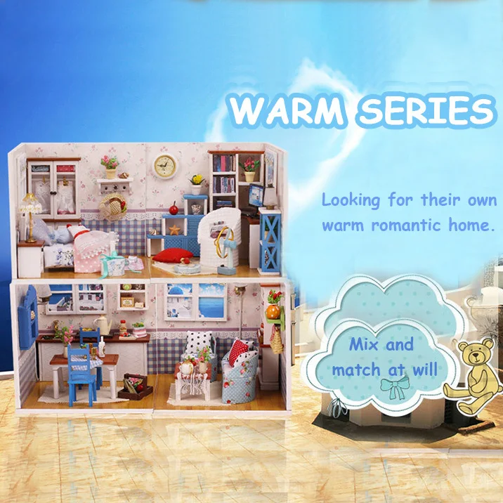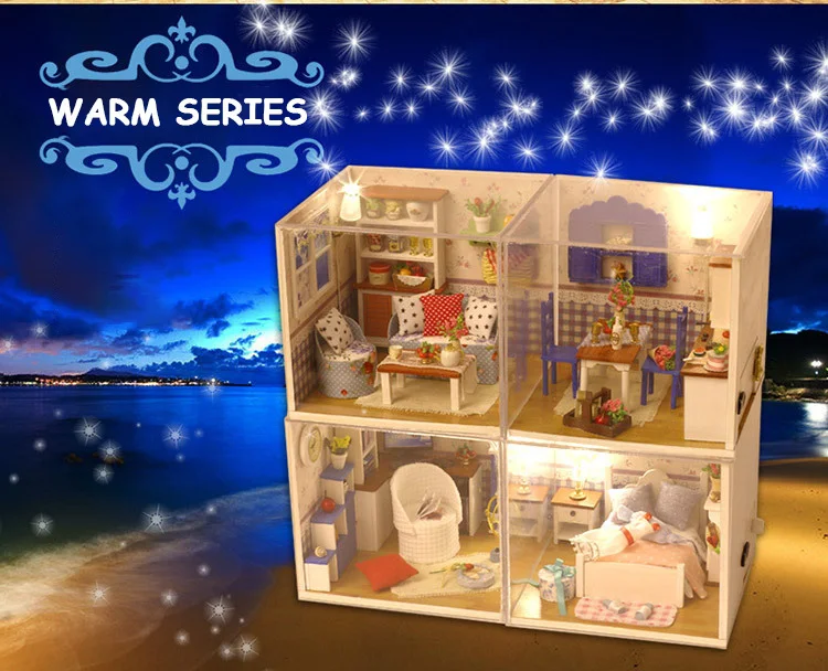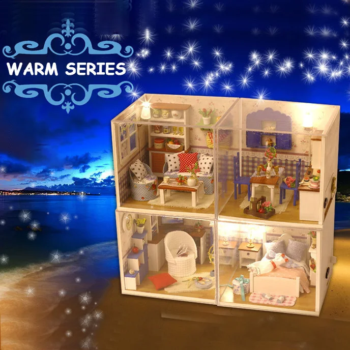 Кукольный дом сделай сам, деревянный дом ручной работы, модная Сборная модель здания, теплая серия, подарки на день рождения и Рождество для мальчиков и девочек