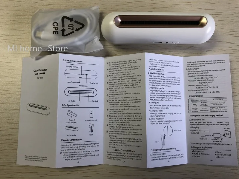 9 дней доставка до Киева, Новой Почтой, объединённой посылкой. Трек отслеживался. Упаковано хорошо, приехало целым. Очень хорошо и профессионально выглядит, фирменно, даже разъём USB C, а не micro USB, что очень хорошо. Интуитивно понятное управление, приятное мягкое свечение светодиода. При включении внутри светится разряд, тихий звук, озон. Инструкция на китайском и на английском подробная. Уже успел разрядить, зарядка полная за 2.5 часа от одноамперной зарядки, хотя АКБ 800 mAh. Запах с холодильника действительно пропал, работает! Сначала включил усиленный режим на три дня, разрядил, зарядил, и теперь поставил на 30 дней, слабый режим. Позже дополню отзыв со временем, в целом покупкой доволен, рекомендую!