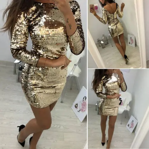 Летнее Новое модное сексуальное женское облегающее вечернее платье с золотыми блестками, стильное облегающее Клубное короткое платье