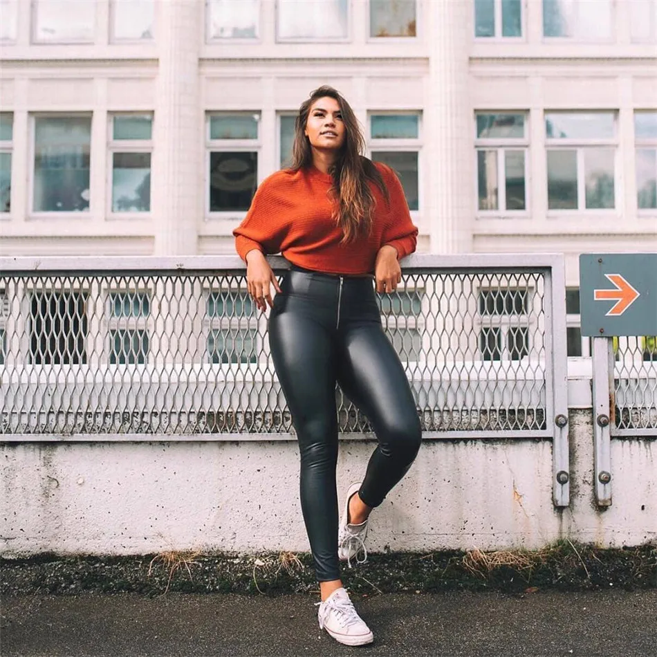 Леггинсы женские кожаные для занятий йогой, с высокой талией, размера плюс
