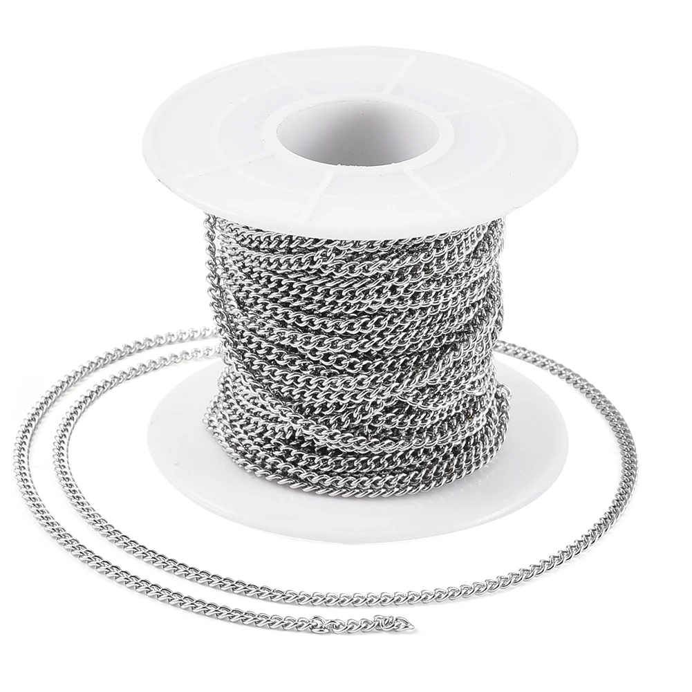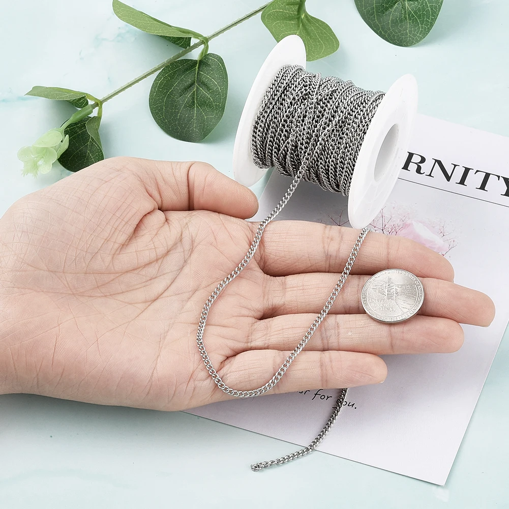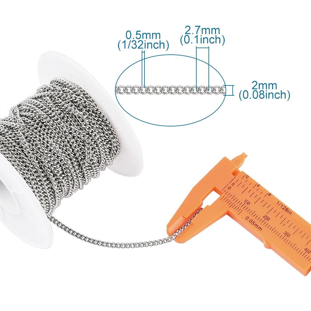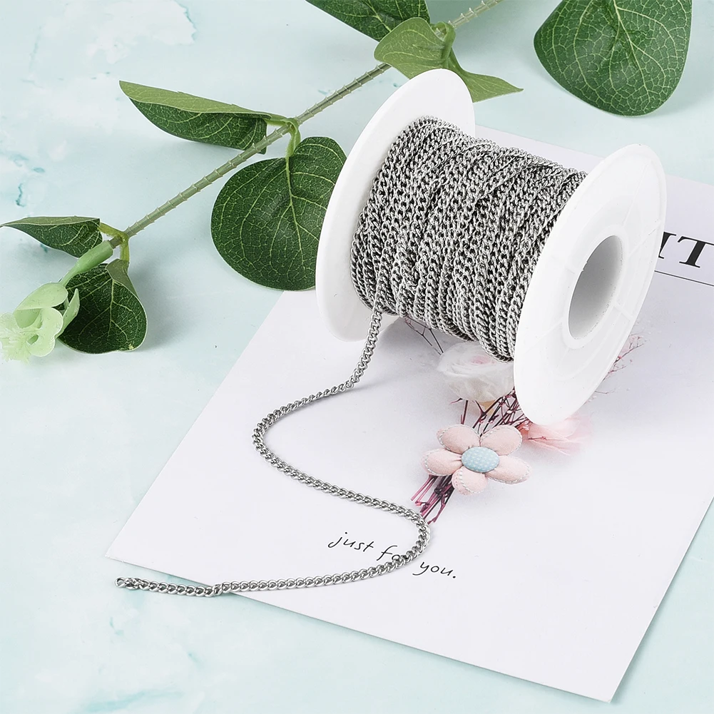 304 Нержавеющаясталь бордюрный несварные Ссылка для Чокер "сделай сам" Браслеты для ожерелья для ножного браслета украшения, украшения своими руками, 2.7x2x0.5mm